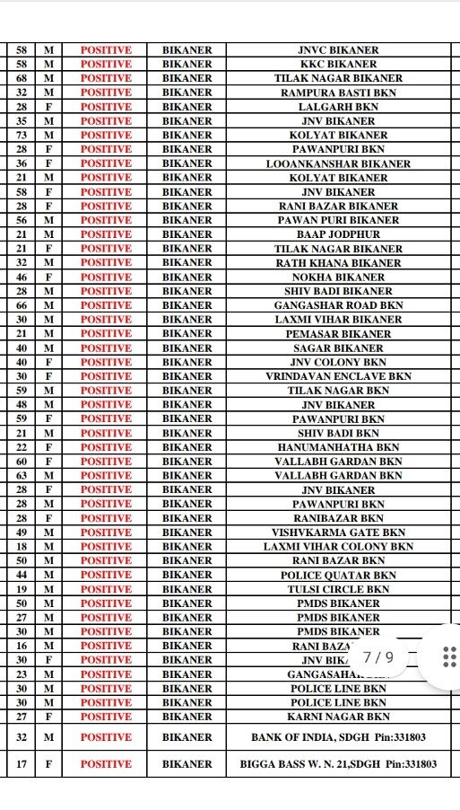 रविवार सुबह की पहली रिपोर्ट में फिर कोरोना ब्लास्ट हुआ है अभी डॉ बीएल मीणा से मिली जानकारी अनुसार बीकानेर में 370 कोरोना पाॅजिटिव मिलें हैं।