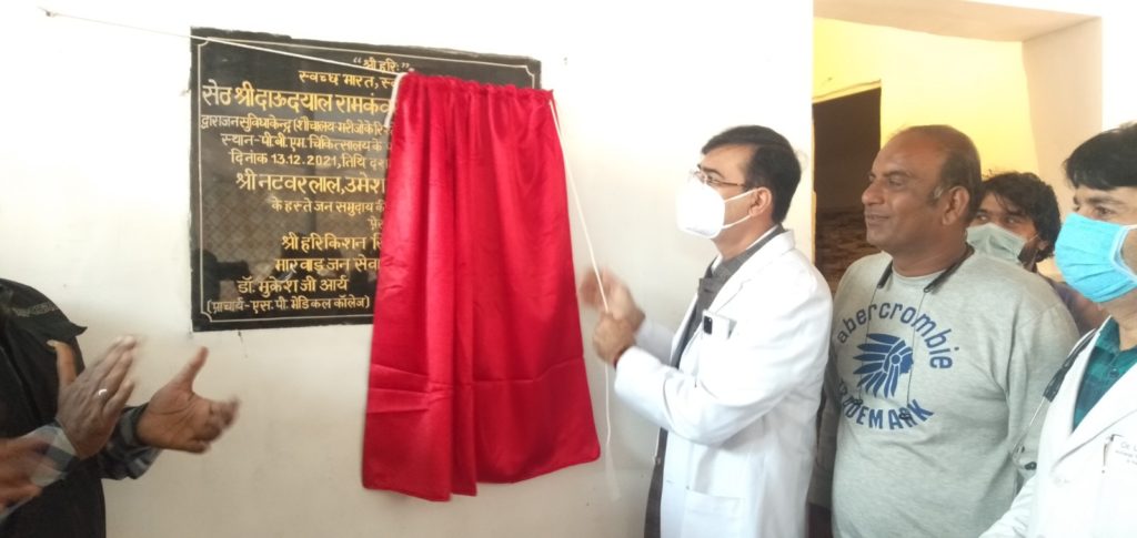 भामाशाह नटवरलाल उमेस कुमार मुंबई वाले के द्वारा महिला कॉन्प्लेक्स आज पीबीएम डॉक्टर अधीक्षक परमिंदर सिरोही, डॉक्टर एलके कपिल सीएमओ ट्रॉमा सेंटर, हरी किशन सिंह राजपुरोहित, रमेश व्यास ,विनोद बीएसएफ जीवनदायिनी ब्लड सेवा समिति सचिव, युद्धवीर सिंह हाड़ला, डॉ पूनाराम,छैलू सिंह कावनी, छेलू सिंह चौहान , अन्य समाज सेवी मौजूद में शुरू किया गया।