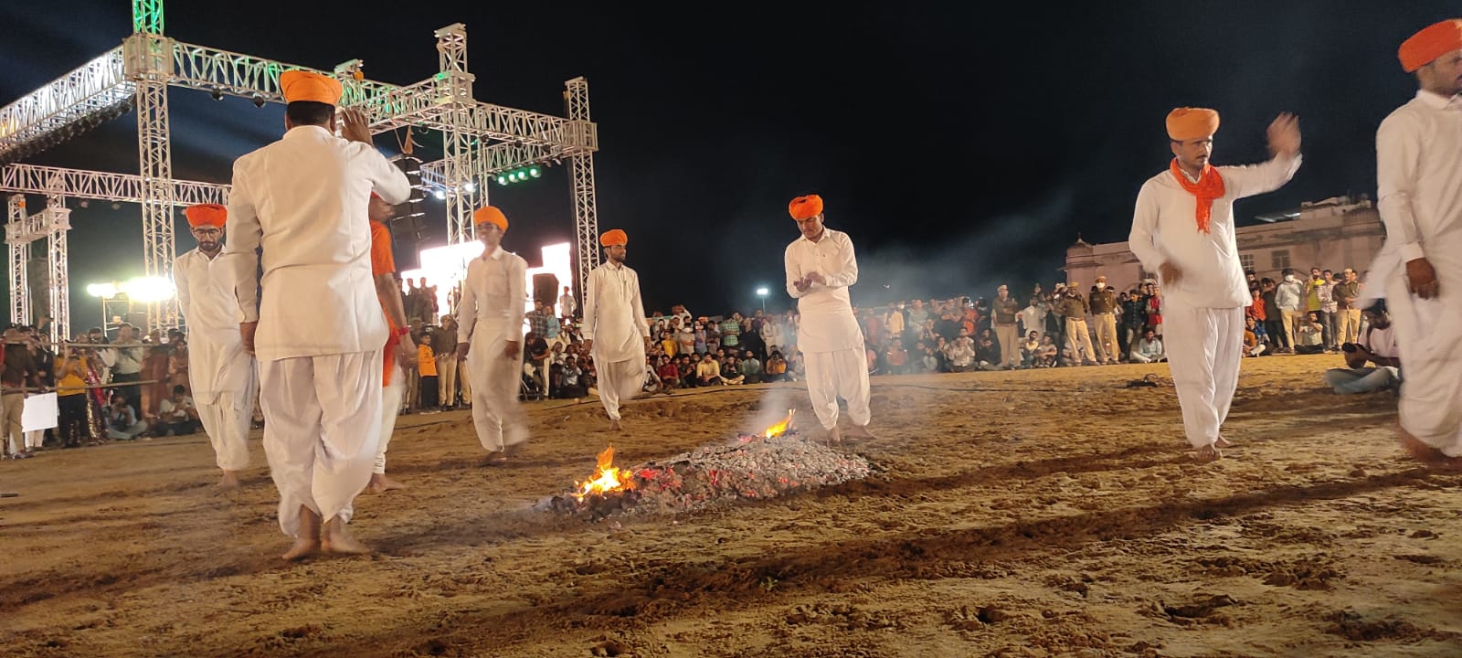 सांस्कृतिक संध्या की शुरूआत मश हूर गायक अली-गनी ने ‘केसरिया बालम पधारो म्हारे देश’ के साथ की तो दर्शकों की तालियों से समूचा स्टेडियम गूंज गया। इस श्रृंखला में डबड़ी (जैसलेमर) के सूफी गायक सावण खां एंड पार्टी ने सूफी गीतों की प्रस्तुति दी। जोधपुर के कालूनाथ एवं पार्टी ने कालबेलिया नृत्य, इन्दौर के कृष्णा सूर्या ने ओह री सखी मंगल गाओ री, अलवर के बन्ने सिंह एंड पार्टी ने रिम भवई और खारी नृत्य की आकर्षक प्रस्तुति दी। डीग-भरतपुर के जितेन्द्र एंड पार्टी ने मयूर नृत्य और बृज होली की प्रस्तुति के साथ फाल्गुनी बयार बिखेरी। इसी श्रृंखला में सबसे अंत में मालासर के अग्नि नृत्य महंत रुघनाथ सिद्ध के नेतृत्व में ‘ सतगुरु सिंवरू मोवणा’ की धुन के साथ किश न नाथ, मामराज नाथ, जगदीष नाथ, भागीरथ नाथ, प्रहलाद नाथ, धर्मनाथ, सोहन नाथ, जसनाथ, शंकर नाथ, रामेसर नाथ तथा काननाथ सिद्ध ने धधकते अंगारों पर नृत्य करते हुए सभी को आश्चर्यचकित कर दिया।