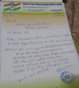सुजानदेसर ब्राह्मणों के मोहल्ले में सीवरेज का अधूरा कार्य पूर्ण करने व गन्दे पानी के समुन्द्र को हटाने के लिए माननीय मुख्यमंत्री महोदय बीकानेर पधारने पर ज्ञापन दिया शहर जिला कांग्रेस कमिटी के ए ब्लॉक अध्यक्ष मगन लाल पाणेचा के नेतृत्व में नंदू पार्षद, बीरबल गोदारा मोहल्ले वासी सुखदेव पंचारिया , कन्हैया लाल पाणेचा, हरिकिशन जोशी , हरिकिशन झाडोलिया एवं भंवर पाणेचा आदि लोगो ने सीवरेज का कार्य अति शीघ्र पूर्ण करने के लिए माननीय मुख्यमंत्री महोदय से निवेदन किया । मुख्यमंत्री महोदय ने पूर्ण रूप से आश्वासन दिया हैं कि कार्य अति शीघ्र पूर्ण होगा।