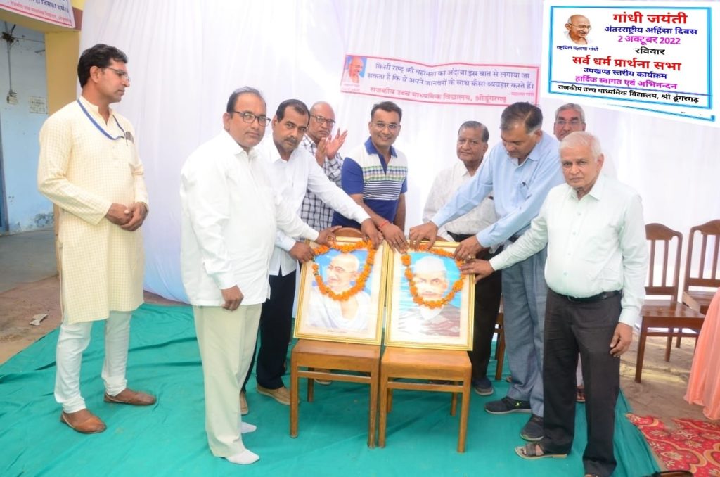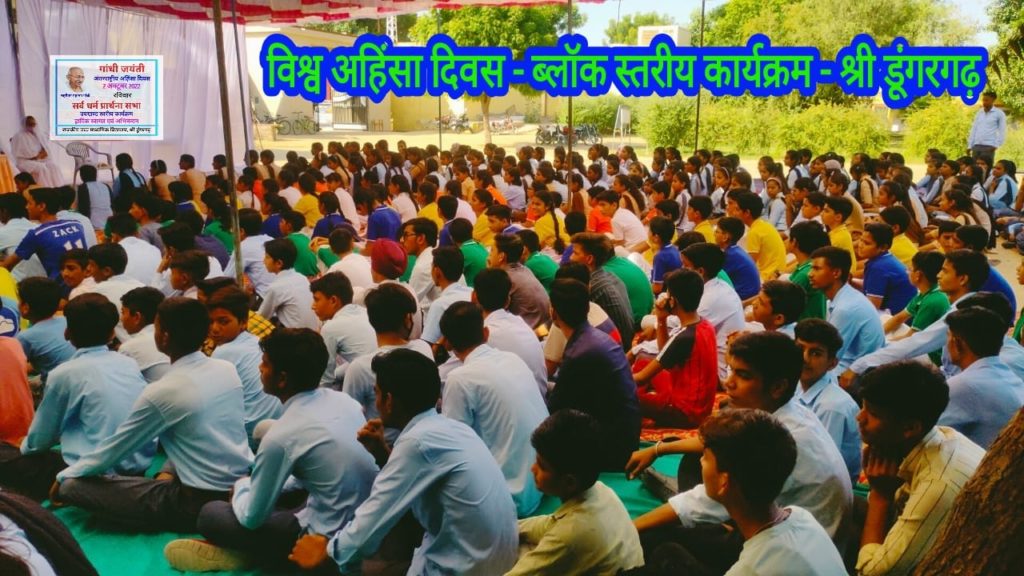 अहिंसा की प्रतिरूप साध्वी चरितार्थप्रभा नेरखे। वे रविवार को कस्बे के राजकीय उच्च माध्यमिक विद्यालय में गांधी जयन्ती एवं विश्व अंहिसा दिवस के अवसर पर शिक्षा विभाग एवं स्थानीय अणुव्रत समिति के संयुक्त तत्वावधान में आयोजित ब्लॉक स्तरीय सर्व धर्म प्रार्थना सभा कार्यक्रम में सम्बोधित कर रही थीं। उन्होंने कहा कि गांधी जी जन्म से महात्मा नहीं थे, उन्होंने अंग्रेजों के खिलाफ देश में जन जागृति अभियान चलाया तथा आजादी के लिए अनेक कष्ट सहे। उनके द्वारा सम्पन्न कल्याणकारी कार्यों के कारण वे महात्मा बने। महात्मा गांधी एवं आचार्य तुलसी ने स्वयं अहिंसा के मार्ग पर चल कर लोगों को आगे बढ़ने की प्रेरणा दी। कार्यक्रम के शुरू में अतिथियों द्वारा राष्ट्र पिता महात्मा गांधी एवं पूर्व प्रधान मंत्री लाल बहादुर शास्त्री के चित्रों पर माल्यार्पण किया गया तथा डॉ राधाकिशन सोनी ने कार्यक्रम की जानकारी दी। फिर गांधी जी की तीन सर्व धर्म प्रार्थनाओं का विद्यार्थियों एवं उपस्थित समुदाय ने समवेत स्वर में सामूहिक गायन किया गया। कार्यक्रम की निरन्तरता में साध्वी आगमप्रज्ञा ने विद्यार्थियों को अहिंसात्मक जीवन शैली से सम्बंधित योगाभ्यास करवाए तथा संगायिका अभिलाषा बांठिया ने अणुव्रत गीत का संगान किया। इस अवसर पर मुख्य ब्लॉक शिक्षा अधिकारी ओम प्रकाश प्रजापत ने निरपराध प्राणियों को नहीं सताने की सलाह देते हुए जीवन में आगे बढ़ने के लिए कहा। कार्यक्रम में अहिंसा, नशा मुक्ति, सत्य भाषण, मृदु वचन, श्रद्धा-भावना आदि मानवीय मूल्यों के बारे में विस्तार से बताया गया तथा उपस्थित जनसमुदाय ने संकल्प लिए। सेसोमूं महाविद्यालय के प्राचार्य डॉ. मदन सैनी ने अहिंसा दिवस पर अपनी अभिव्यक्ति दी। कार्यक्रम में श्रीमती अंजू पारख, श्री ओसवाल पंचायत के मंत्री प्रमोद बोथरा, युवा एडवोकेट रणवीर खीची एवं अणुव्रत समिति के अध्यक्ष सत्यनारायण स्वामी ने भी विचार रखे। प्राचार्य आदूराम जाखड़ ने आभार प्रकट किया। कार्यक्रम में दीपचंद बोथरा, नरेंद्र डागा, कमल झाबक, मनोज पारख, संजय झाबक, विद्यालय एस डी एम सी सदस्य, बालिका विद्यालय की कार्यवाहक प्राचार्या श्रीमती विमला, कन्हैयालाल सिखवाल महात्मा गांधी अंग्रेजी माध्यम विद्यालय के कार्यवाहक प्राचार्य रामप्रताप जाखड़, ताल मैदान हाई स्कूल, बालिका स्कूल, अंग्रेजी माध्यम स्कूल के स्टाफ सदस्यों ने भाग लिया। कार्यक्रम का संचालन राजू हीरावत ने किया। कार्यक्रम सम्पन्न होने के बाद एन एस एस प्रभारी प्रदीप कुमार कौशिक के नेतृत्व में विद्यार्थियों द्वारा अंहिसा संदेश एवं चिरंजीवी योजना जागरूकता रैली निकाली गई।