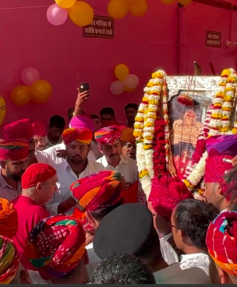 देशनोक 2 अक्टूबर रविवार को करणी माता जन्मोत्सव जयंती( सप्तमी) के उपलक्ष में करणी माता की भव्य शोभायात्रा निकाली गई ।जो कि कस्बे के मुख्य मार्गों से होते हुए तेमड़ाराय मन्दिर पहुंची। रविवार को सुबह 9:30 बजे करणी माता की शोभायात्रा करणी माता मन्दिर के मुख्य द्वार से निकलते ही मंदिर के बाहर परिसर खड़े श्रद्धालुओं ने करणी माता के जयकारे लगाने शुरू कर दिए। शोभा यात्रा एसबीआई बैंक, शिव मंदिर, पुलिस थाना, नगर पालिका, सामुदायिक चिकित्सालय, जैन जवाहिर मंडल होते हुए तेमड़ाराय मन्दिर पहुंची। शोभा यात्रा की जानकारी अध्यक्ष बादल सिंह द्वारा दी गई