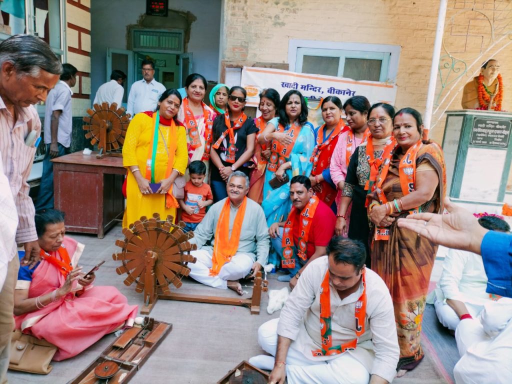 इस अवसर पर प्रधानमंत्री श्री नरेंद्र मोदी के आह्वान पर भारतीय जनता पार्टी के कार्यकर्ताओं ने खादी मंदिर पहुँच कर बड़ी संख्या में खादी उत्पादों की भी खरीद की। खादी मन्दिर में कार्यकर्ताओं ने चरखे के माध्यम से कताई के कार्य को भी सीखा।