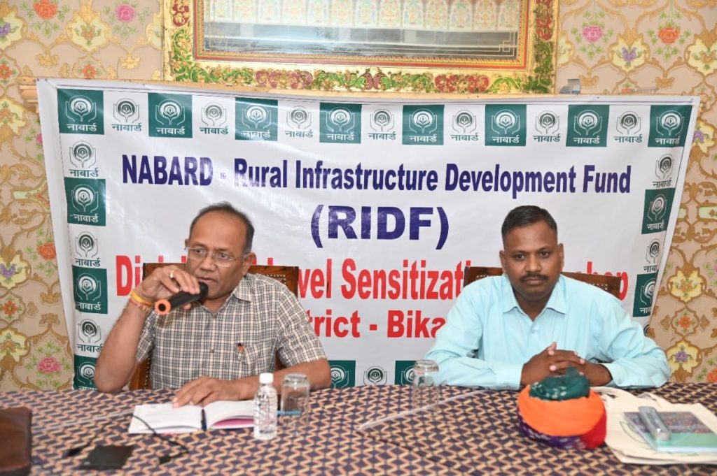 बीकानेर, 10 अक्टूबर। नाबार्ड द्वारा आरआईडीएफ के अंतर्गत राज्य सरकार को वित्तीय सहायता के माध्यम से चलाये जा रहे विभिन्न कार्याे को और बेहतर ढंग से अंतिम रुप देने के लिए अधीक्षण अभियंता मुकेश गुप्ता की अध्यक्षता में सोमवार को कार्यशाला का आयोजन किया गया.।