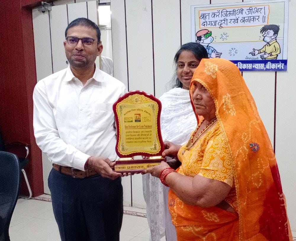 जिला कलक्टर और जिला परिषद की मुख्य कार्यकारी अधिकारी नित्या के. ने कोलायत पंचायत समिति की ग्राम पंचायत दियातरा के सरपंच किशन सिंह भाटी और ग्राम विकास अधिकारी भंवर राम विश्नोई , खाजूवाला ब्लॉक के 14 बीडी के सरपंच राजाराम तथा 17 केवाईडी के ग्राम विकास अधिकारी मैनपाल, पूगल ब्लॉक की डंडी ग्राम पंचायत के सरपंच मोहम्मद अली और दो एडीएम के ग्राम विकास अधिकारी सुरेंद्र कुमार को सम्मानित किया गया। इस अवसर पर लूणकरणसर के उदाणा ग्राम पंचायत की सरपंच पार्वती देवी मेघवाल और ग्राम विकास अधिकारी रामनिवास सारण, नोखा पंचायत समिति की अणखीसर ग्राम पंचायत की सरपंच रामी देवी और ग्राम विकास अधिकारी धीरेंद्र श्रीवास्तव को भी सम्मानित किया गया।