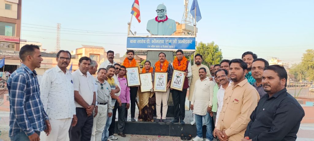 बीकानेर, बीकानेर वाल्मीकि समाज को वर्तमान की राज्य सरकार के द्वारा उचित प्रतिनिधित्व दिए जाने की खुशी में समस्त वाल्मीकि समाज के सहयोग से समाजसेवी जयदीपसिंह जावा के नेतृत्व में नवनियुक्त बीकानेर नगर नगम पार्षद निर्मला बलबेश चांवरिया, राजस्थान राज्य सफाई कर्मचारी आयोग सदस्य ओमप्रकाश लोहिया, बीकानेर जेल सलाहकार समिति सदस्य ललित तेजस्वी, राजस्थान सरकार कला संस्कृति राज्य समिति सदस्य अभिषेक डेनवाल का माला पहनाकर व समाजिक समानता का स्मृति चिन्ह सहित “श्री वाल्मीकि रत्न संम्मान पुरुस्कार” से आज अम्बेडकर सर्किल पर सम्मानित किया गया है। आज के इस सामाजिक आयोजन में मौजूद सेवानिवृत्त वरिष्ठ लेखा अधिकारी रविंद्र पण्डित, भामाशाह विनोद चांवरिया, शेरसिंह जावा, नेमीचन्द बारासा,रत्नलाल घारू, ज्ञानप्रकाश बारासा, चेतन जावा, चन्द्रशेखर चांवरिया, नेमीचन्द चांगरा, सोनू बारासा, मेघराज तंवर, रोहित पण्डित, भरत चांगरा, कपिल जेदीया, दलीप तेजी, पंकज लोहिया, सजय भारती, मोतीलाल तेजी, अशोक जावा, लक्षमन पण्डित, कमल चांवरिया, पन्नालालजी, राजेश बारासा, थानमल पण्डित, श्याम सर्वटा, दिलीप तेज़ी सहित अन्य समाज के गणमान्य अथिति शामिल रहे।