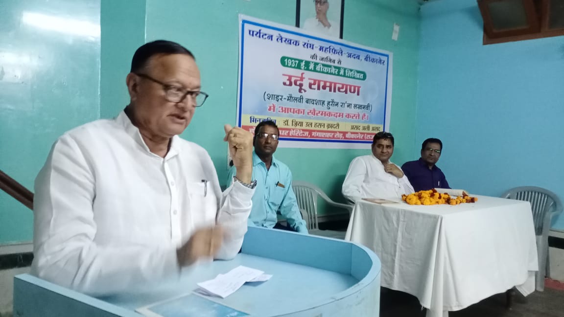 बीकानेर, 23अक्टूबर। पर्यटन लेखक संघ-महफिले अदब के साप्ताहिक अदबी कार्यक्रम के अंतर्गत रविवार को होटल मरुधर हेरिटेज में 1935 में बीकानेर में लिखी ‘उर्दू रामायण’ का वाचन किया गया।