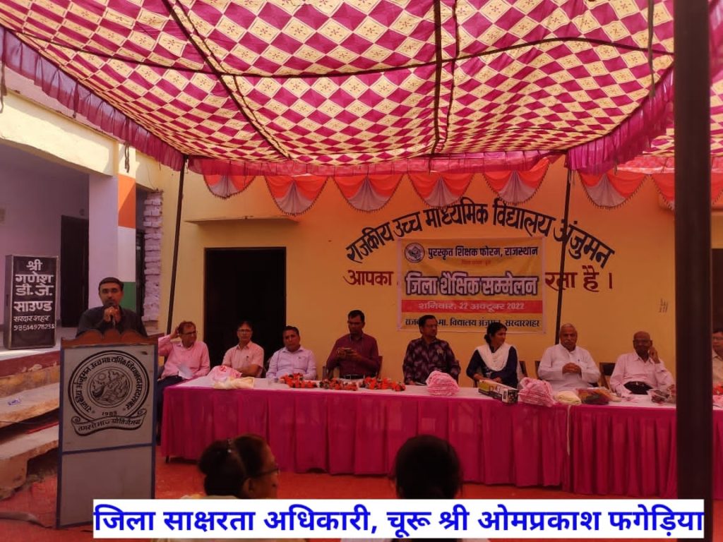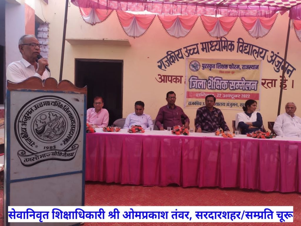 सरदारशहर। वर्तमान वैश्विक युग में युवा पीढ़ी भारतीय संस्कृति के मूल्यों को भूल रही है। नवयुवक अपने दादा-दादी के पास बैठना नहीं चाहते। वे आने परिजनों एवं घर आए अतिथियों से बात करने में रुचि नहीं लेते। नैतिकता नैतिकता का और अधिक क्षरण न हो इसलिए बाल्यकाल से ही शिक्षा के साथ उन्हें संस्कारवान बनाना सर्वोच्च प्राथमिकता होनी चाहिए। यह हम सबका दायित्व है। शिक्षक समाज को दिशा देता है। अतः उसकी जिम्मेदारी अधिक बन जाती है। ये विचार भामाशाह बृजमोहन सर्राफ ने कस्बे के राजकीय अंजुमन विद्यालय में आयोजित चूरू जिले के पुरस्कृत शिक्षकों के जिला स्तरीय सम्मेलन एवं दीपोत्सव स्नेह मिलन समारोह में रखे। सुजानगढ़ के सीबीईओ कुलदीप व्यास द्वारा प्रस्तुत सरस्वती वंदना से शुरू कार्यक्रम में प्राचार्य याकूब खां ने शाब्दिक स्वागत किया तथा अंजुमन स्कूल के संस्थापक एवं सम्मेलन के संयोजक उमरदीन सैयद ने कहा कि साम्प्रदायिक सौहार्द के प्रतीक सरदारशहर में सरस्वती पुत्रों का मिलन गर्व एवं सौभाग्य की बात है। उन्होंने अंजुमन स्कूल की संस्थापना एवं उसके विकास में अवदान देने वाले जनप्रतिनिधियों, भामाशाहों, सामाजिक कार्यकर्ताओं एवं शिक्षकों की मुक्तकण्ठ से प्रशंसा की एवं आभार जताया। शिक्षाविद् एवं फोरम के जिला मंत्री ओमप्रकाश तंवर से पुरस्कृत शिक्षकों द्वारा जिले में शिक्षा, साक्षरता, बन्दी सुधार, पर्यावरण, शोध आदि क्षेत्रों में किए जा रहे कार्यों की जानकारी दी। पूर्व उपनिदेशक डॉ ज्ञान प्रकाश गुप्ता ने कहा कि बच्चे के भविष्य-निर्माण में शिक्षकों के व्यवहार एवं विद्यालय के भौतिक, शैक्षिक एवं सांस्कृतिक वातावरण का अत्यधिक योगदान होता है। जिला साक्षरता अधिकारी ओमप्रकाश फगेड़िया ने कहा कि जिले के पुरस्कृत शिक्षकों द्वारा किए जा रहे कार्य राज्यभर में ‘चूरू मॉडल’ के रूप में पहचान बन रहे हैं। सीआरपीएफ सेवानिवृत्त मनफूल खान ने कहा कि शिक्षकों की सेवाओं मानव जाति उपकृत है। उन्होंने पूर्वोत्तर सीमांत क्षेत्र का उदाहरण देते हुए कहा कि वहाँ शिक्षकों ने समाज एवं लोगों की तस्वीर ही बदल दी। पुरस्कृत शिक्षक फोरम के जिलाध्यक्ष सूर्यप्रकाश त्रिवेदी ने कहा कि पुरस्कृत शिक्षक पूर्ण जिम्मेदारी से सामाजिक सरोकारों से जुड़े रहकर समाज में अनवरत सेवाएं दे रहे हैं। उनकी कोई मांग नहीं अपितु समाजोत्थान के किए उत्तम शिक्षा के लिए वातावरण सर्जन के कार्य-प्रयास करना मुख्य ध्येय है। समारोह में डाइट प्राचार्य गोविंद सिंह राठौड़, सीबीईओ सरदारशहर अशोक पारीक, सीबीईओ राजगढ़ डॉ. सुमन जाखड़, एसीबीईओ डॉ. अशोक गौड़, अंजुमन स्कूल के पूर्व संस्था प्रधान मोहनलाल सेवदा, डॉ. विश्वलाल पारीक, मोहनलाल धौलपुरिया, सीता