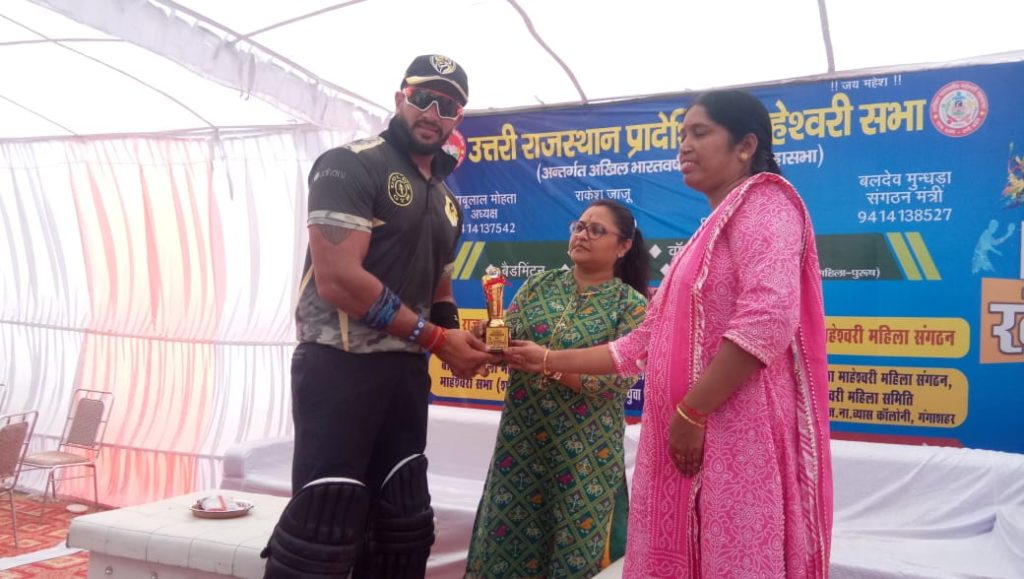 लाहोटी,अखिल भारतीय माहेश्वरी महासभा के महामंत्री संदीप काबरा,प्रदेशाध्यक्ष बाबूलाल मोहता,नोखा नगरपालिका अध्यक्ष नारायण झंवर,शोभा सादाणी सहित समाज के अनेक संगठनों के पदाधिकारी मौजूद रहे। जिन्होंने इस आयोजन को सामाजिक एकरूपता में बढ़ते एक कदम की संज्ञा दी। खेल महोत्सव के तहत रेलवे ग्राउण्ड व सादुल क्लब मैदान में क्रिकेट,करणी सिंह इंडोर स्टेडियम में बैडमिन्टन तथा स्काईबर्ड में कैरम व शतरंज प्रतियोगिता के मुकाबले शुरू हुए। जिसमें सभी मैचों में खिलाडिय़ों ने जीत के जज्बे के साथ अगले दौर में कदम रखे। मुख्य समारोह गुरूकुल बी एल मोहता लर्निंग इन्स्टीटयूट सींथल में हुआ। प्रदेश मंत्री राकेश जाजू ने बताया कि प्रतियोगिता क्रिकेट में हैदराबाद वारियर्स ने माहेश्वरी स्पोटर्स जूनियर को चार विकेट से हराया। इस मैच के मैन ऑफ द मैच मनीष कुमार रहे। वहीं दूसरे मैच में गजनेर स्पोटर्स टीम ने सुपर ओवर में माहेश्वरी स्पोटर्स सीनियर को मात दी। पहले बल्लेबाजी करते हुए माहेश्वरी स्पोटर्स सीनियर ने 6 विकेट पर 128 रन बनाएं। जबाब में गजनेर स्पोटर्स भी निर्धारित ओवर में 128 रन ही बना सकी। इस मैच में मैन ऑफ द मैच भरत झंवर रहे। वहीं कैरम प्रतियोगिता जूनियर वर्ग में दिव्यांश राठी,लक्षिता काबरा,लक्ष्य बागड़ी,कृष्णा बागड़ी विजेता,सीनियर वर्ग में प्रमोद चेचानी,नरेश बाहेती,राजकुमार तापडिय़ा,अनिल मूंधड़ा,ओमप्रकाश मालानी,विजय भठड़,मनीष चांडक,मनीष बिहाणी,पंकज चांडक,नारायण मोहता,सुधीर चांडक,केशव चांडक,कैलाश सोमाणी विजेता रहे। सीनियर वर्ग-डबल में रौनक एवम रोहित तापडिय़ा तथा प्रमोद एवम अनिल मूंधड़ा ने जीत दर्ज की। उधर नोखा में भी क्रिकेट मैच का आयोजन हुआ। जिसका शुभारंभ पूर्व संसदीय सचिव कन्हैयालाल झंवर व पूर्व पालिकाध्यक्ष श्रीनिवास झंवर ने खिलाडिय़ों का परिचय लेकर किया।ये रहे बैडमिन्टन के परिणाम