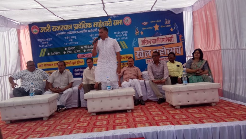 बीकानेर। उत्तरी राजस्थान प्रादेशिक माहेश्वरी सभा के बैनर तले आज माहेश्वरी समाज का खेल महोत्सव का आगाज हुआ। मुख्य समारोह सींथल में गुरूकुल बी एल मोहता लर्निंग इन्स्टीट्यूट में आयोजित हुआ। जहां बतौर अतिथि सांगानेर विधायक अशोक