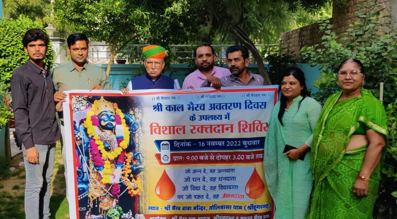 तोलियासार गांव स्थित विश्वरक्षक भैरव देव धाम पर 16 नवंबर को भैरव जन्मोत्सव मनाया जाएगा! इस अवसर पर श्री भैरव भक्त मंडल, श्री डूंगरगढ़ की और से दो दिवसीय महोत्सव का आयोजन किया जाएगा! महोत्सव के लिए बैनर का विमोचन केंद्रीय मंत्री अर्जुनराम जी मेघवाल द्वारा किया गया!इस दौरान अशोक झाबक, देवेंद्र उपाध्याय, विमल चुरा, आदर्श व्यास, नीतू आचार्य, सुधा आचार्य आदि मौजूद रहे!श्री भैरव भक्त मंडलके सदस्यों ने बताया कि तोलियासार गांव में द्वितीय श्री काल भैरव अवतरण महोत्सव पर 15 नवंबर रात्रि को श्री भैरव अष्टोतर शतनाम जप किए जाएंगे! इस के अलावा 16 नवंबर को रुद्राभिषेक व बाबा का श्रृंगार होगा!इसी दिन मंदिर परिसर में विशाल रक्तदान शिविर का भी आयोजन किया गया है! रात्रि बाबा का विशाल भव्य जागरण का भी आयोजन किया गया है जिसमे बाबा के अनन्य गायक नवदीप बीकानेरी व मास्टर नानू एंड पार्टी के द्वारा भजनो की प्रस्तुतियां देंगे!