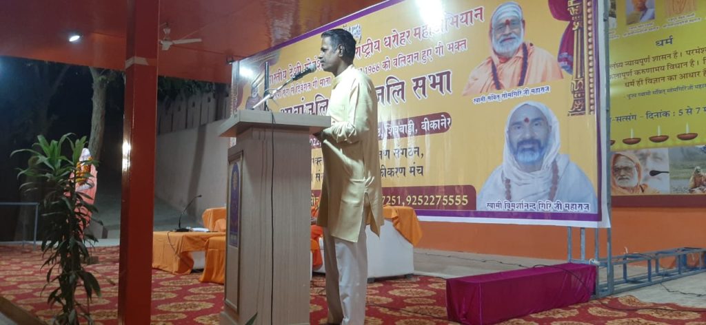 गौ गोचर संरक्षण संयुक्त मोर्चा के द्वारा वर्तमान समय में लंपी रोग से ग्रसित गोवंश के देवलोक गमन होने पर उन्हें श्रद्धांजलि और 7 नवंबर 1966 को बलिदान हुए गो भक्तों के लिए भावांजलि सभा का आयोजन आज शिव मठ शिव बाड़ी मंदिर बीकानेर में किया गया ।