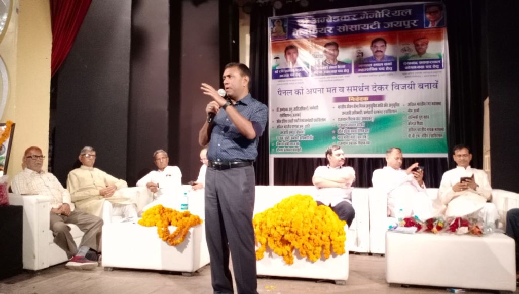 मोहन कडेला – बीकानेर। डॉ अम्बेडकर मेमोरियल वेलफेयर सोसायटी जयपुर के चुनाव को लेकर बीकानेर पहुचें अपराध शाखा जयपुर के अतिरिक्त पुलिस महानिदेशक डॉ. रवि प्रकाश मेहरड़ा का यहां सर्किट हाऊस में स्वागत एवं अभिनन्दन किया गया। डॉ अम्बेडकर मेमोरियल वेलफेयर सोसायटी जयपुर के चुनाव में डॉ. रवि प्रकाश मेहरड़ा अध्यक्ष पद के प्रत्याशी है और वह यहां अपने पूरे पैनल के साथ आए है। स्वागत एवं अभिनंदन के बाद मेहरड़ा सर्किट हाऊस से सीधा टाऊन हॉल में आयोजित कार्यक्रम में पहुंचे। कार्यक्रम में डॉ. रवि प्रकाश मेहरड़ा और उनके पैनल से चुनाव में खड़े हुए प्रत्याशियों का पुष्पमाला पहनाकर स्वागत किया गया। इस मौके पर कार्यक्रम को संबोधित करते हुए डॉ. रवि प्रकाश मेहरड़ा ने कहा कि डॉ अम्बेडकर मेमोरियल वेलफेयर सोसायटी जयपुर के चुनाव छह साल बाद हो रहे है। मेहरड़ा ने कहा कि इस चुनाव में वह अध्यक्ष पद के प्रत्याशी है तथा उनके पैनल में वरिष्ठ उपाध्यक्ष पद हेतु बनवारी लाल बैरवा, महासचिव पद हेतु गणपत लाल वर्मा तथा कोषाध्यक्ष पद हेतु दयानंद सक्करवाल चुनावी मैदान में उतरे है। उन्होंने मतदाता सूची में शामिल बीकानेर के गणमान्यजनों से ज्यादा से ज्यादा मतदान कर उनके पैनल को विजयी बनाने की अपील की। इस मौके पर डॉ. भीमराव अमबेडकर पीठ के महानिदेशक मदन गोपाल मेघवाल, किसन लाल इणखिया, राजकुमार पन्नु, आर्किटेक्ट एसके बैरी, रामकिशोर, राजपाल अहलावत, तहसीलदार कालुराम पडिहार, मदन पटीर, राजेन्द्र पंवार, दीनदयाल जनागल, डाँ सिद्धार्थ असवाल, पिंकी गंगवाल, पुनित ढाल, राजेन्द्र नौसरिया, झंवरलाल पन्नू आदि ने डॉ. मेहरड़ा व उनके पैनल का स्वागत किया। कार्यक्रम में मंच का बेहतरीन संचालन करने के लिए बनवारी लाल बैरवा ने श्याम का सम्मान किया।
