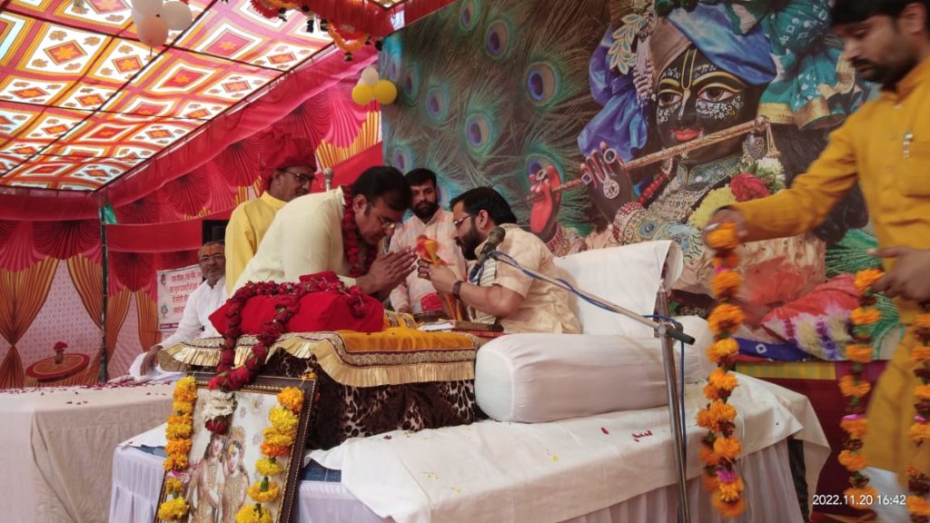 आयोजक परिवार द्वारा कथावाचक और उनके साथ शामिल रहे संगीतमय भागवत कथा में शामिल अन्य कलाकारों का सम्मान किया गया।