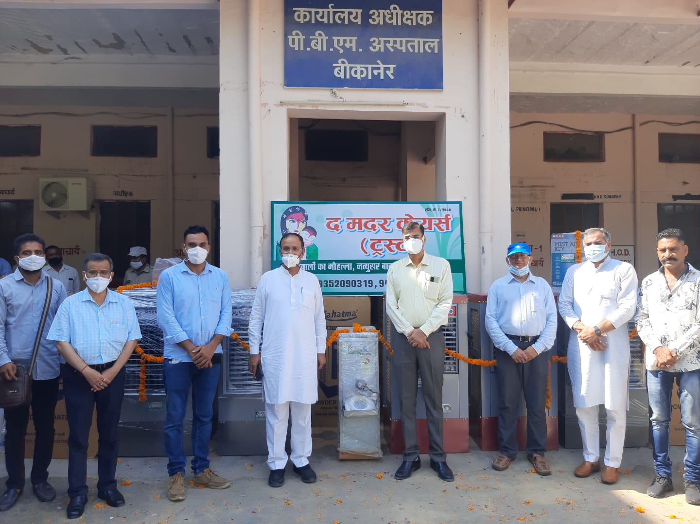 बीकानेर, 15 जुलाई। द मदर्स केयर ट्रस्ट की ओर से गुरुवार को पीबीएम अस्पताल के आई वार्ड के लिए 9 कूलर, एक पंखा तथा एक वाटर कूलर भेंट किया गया।