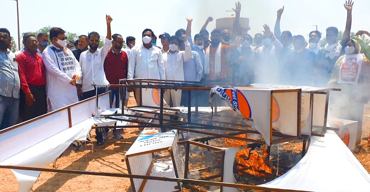 शहर जिला कांग्रेस कमेटी के अध्यक्ष यशपाल गहलोत व देहात अध्य्क्ष महेन्द्र गहलोत ने रोष व्यक्त करते हुवे कहा कि केंद्र सरकार को इस कोरोना काल मे भी पीड़ित देश वासियों पर रहम नही आया प्रतिदिन पेट्रोल डीजल के दामों में बढ़ोतरी कर अपना रावण रूपी असली चेहरा देश वासियों के सामने प्रदर्शित किया है। हम जल्द से जल्द इनके दामों में कमी करने की मांग करते है।
