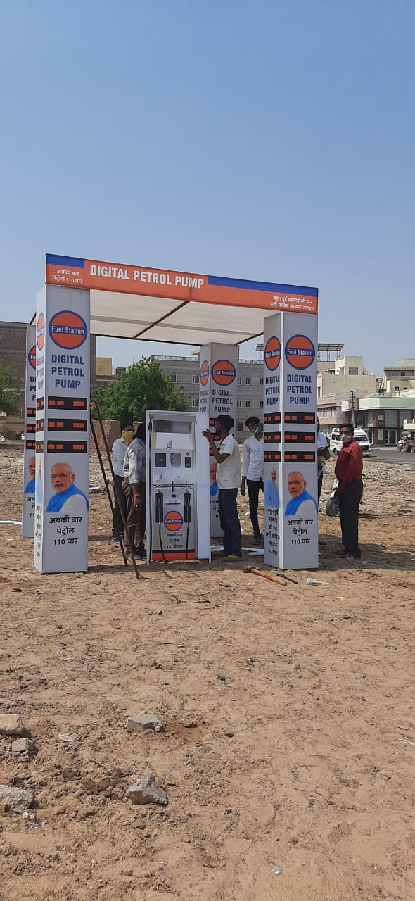बीकानेर – आज अखिल भारतीय कांग्रेस कमेटी के निर्देशानुसार पूरे देश भर में गत 7 जुलाई से 17 जुलाई तक देशव्यापी विरोध प्रदर्शन चल रहा है इसी क्रम में आज शहर ज़िला कांग्रेस कमेटी बी ब्लाक पश्चिम विधानसभा के अध्यक्ष सुमित कोचर के नेतृत्व में जेल रोड़ पर 3D पट्रोल पंप बनाकर उसको विरोध स्वरूप जलाया गया।