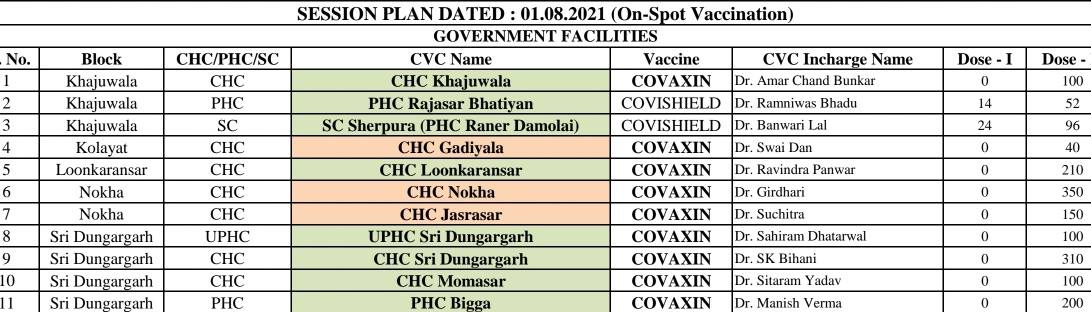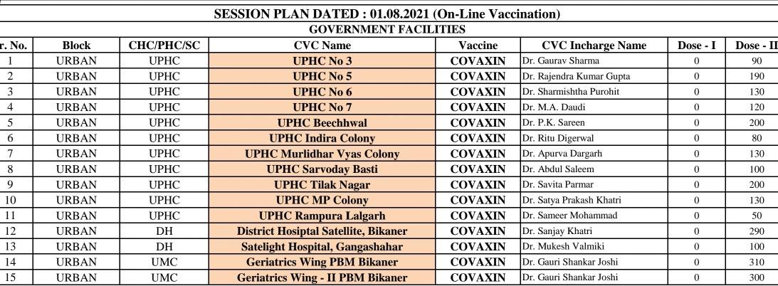 रविवार (1.8.2021) को बीकानेर शहर के 15 केन्द्रों पर *ऑनलाइन* बुकिंग कर होगा टीकाकरणस्लॉट खुलेंगें रात 9 pm#Covaxin IInd dose*वैक्सीनेशन ऑन व्हील्स से भी होगा बीकानेर शहर में टीकाकरण*11 ग्रामीण केन्द्रों पर *ऑन स्पॉट* रेजिस्ट्रेशन कर होगा कोविड टीकाकरण18+ 45+ 60+ सभी के लिए हो रहे साझा सत्र