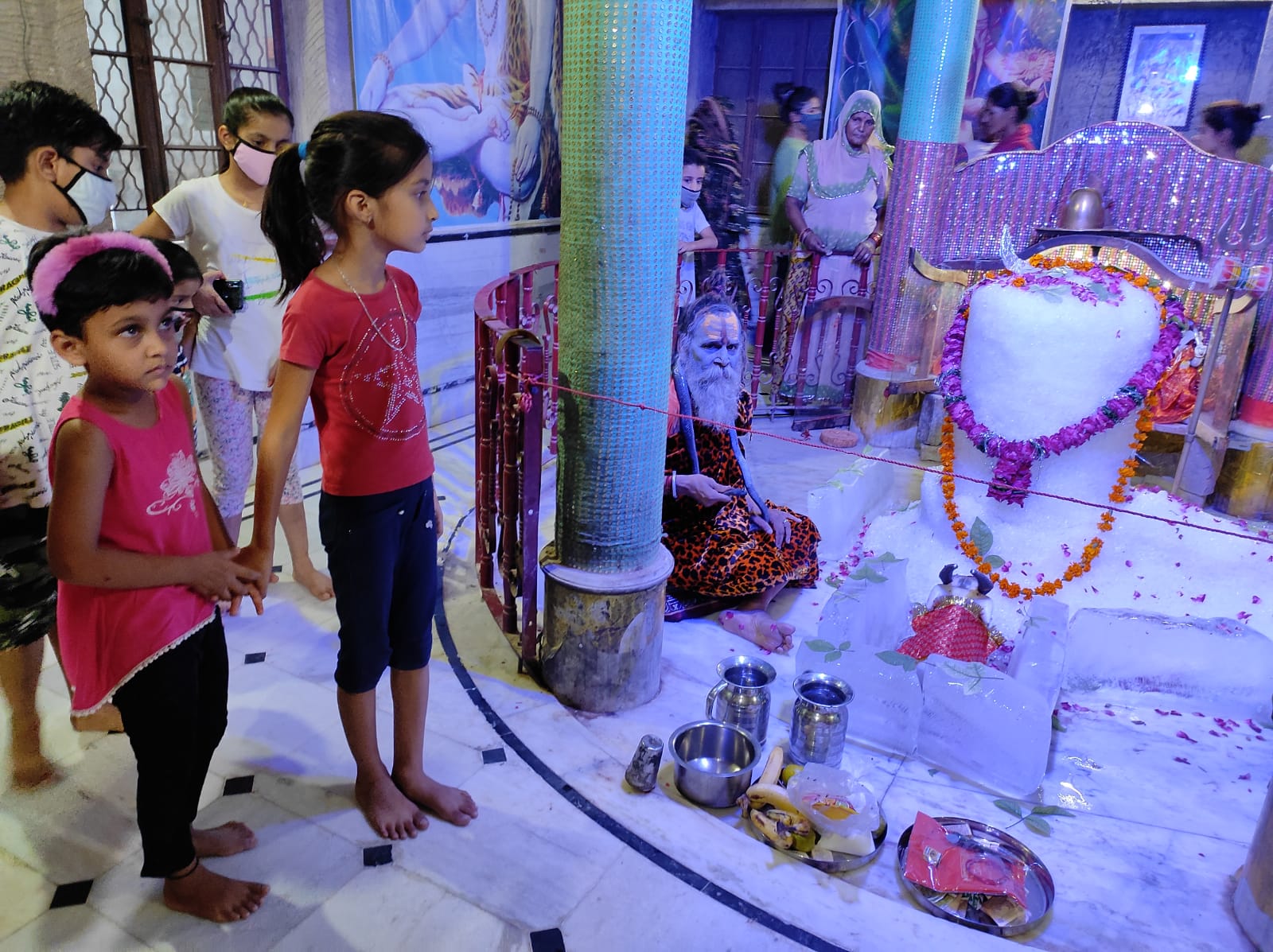 आज पुरानी गिनानी स्थित हनुमान मंदिर स्थित शिवालय में शिवलिंग को विशेष बर्फ व फूल मालाओं से सजाया गया बर्फ का एक विशाल शिवलिंग बनाया गया और उसका अभिषेक कर पूजा अर्चना की गई मंदिर के पुजारी अंजनी शुक्ला ने बताया सावन मास में शिव की पूजा हर मन की इच्छा को पूरी करती है मन की शांति देती है आज की विशेष पूजा सब की मंगल कामना के लिए निरोगी काया के लिए की गई