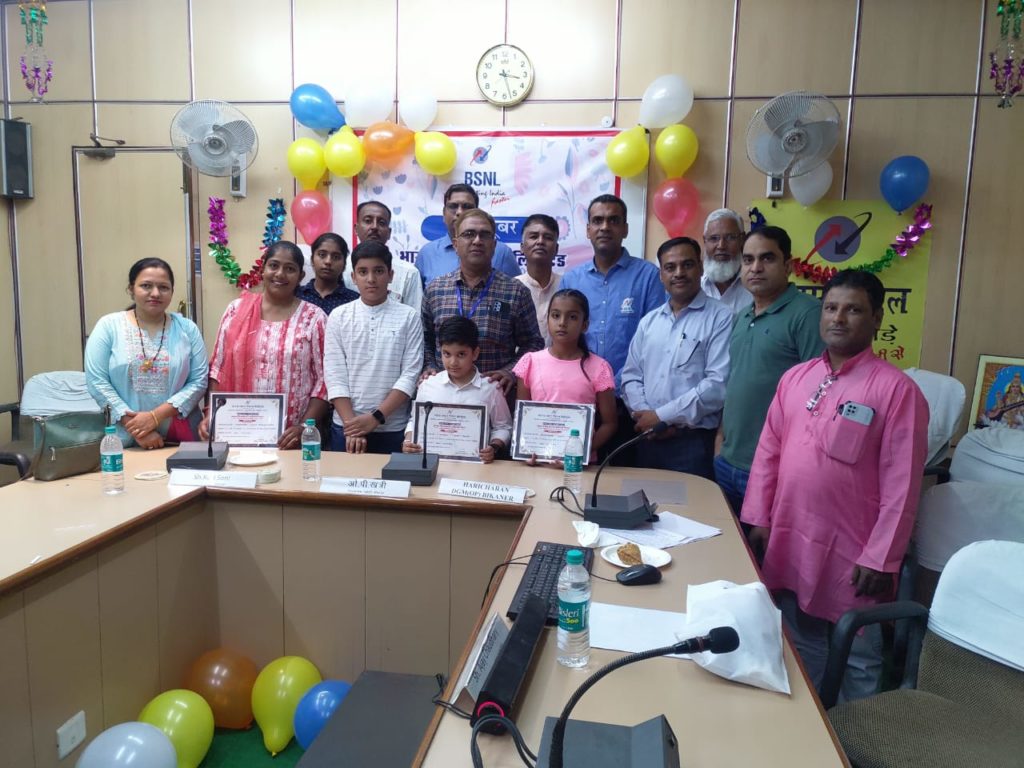 कार्यक्रम में विभिन्न स्कूलों के कक्षा 5 तक के बच्चों के बीच ‘बीएसएनएल भारत फाइबर द्वारा स्मार्ट लर्निंग’ विषय पर आयोजित चित्रकला प्रतियोगिता के विजेताओं को पुरस्कृत भी किया गया । इस प्रतियोगिता में केंद्रीय विद्यालय नंबर 1 की छात्रा वैष्णवी राजपुरोहित ने प्रथम स्थान , बीबीएस के छात्र गर्व गोठवाल ने द्वितीय तथा केंद्रीय विद्यालय नंबर 1 की ही छात्रा मानवी बगोरिया ने तृतीय स्थान प्राप्त किया । पुरस्कार स्वरूप इन तीनों विजेताओं के घर पर क्रमशः 12 महीने,6 महीने तथा 3 महीने का भारत फाइबर हाई स्पीड इंटरनेट कनेक्शन मुफ़्त उपलब्ध करवाया जाएगा ।