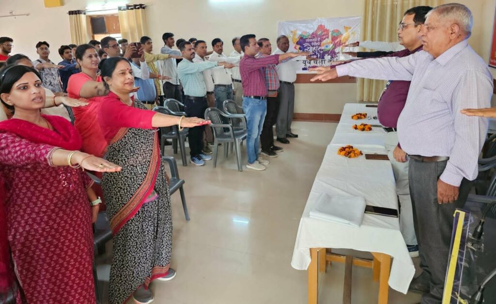 नाबार्ड के डीडीएम रमेश तांबिया ने जिला निर्वाचन कार्यालय की मतदाता जागरूकता मुहीम की जानकारी दी गई। वोटर हैल्पलाईन सहित विभिन्न मोबाइल ऐप्स के बारे में बताया गया। इस दौरान विद्यार्थियों ने शत प्रतिशत मतदान की शपथ ली।