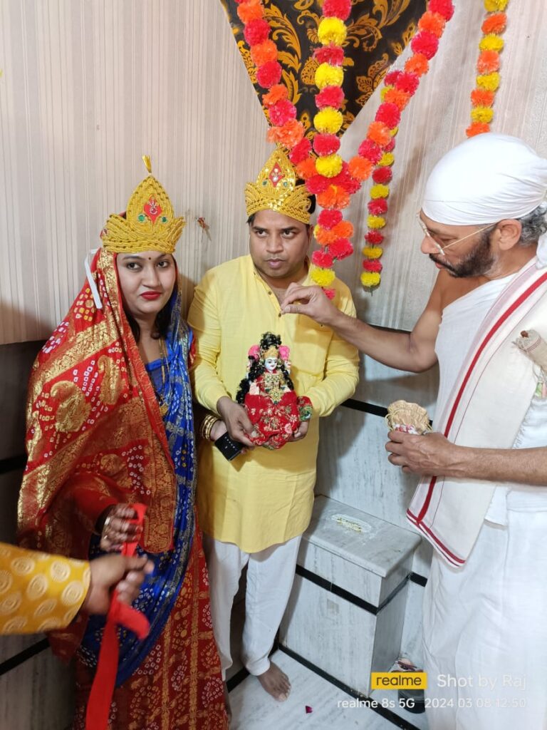 शास्त्रोक्त विधान विधि मंत्रोच्चार निराले बाबा करके श्रीमती लक्ष्मी देवी दीपक जैन परिवार ने मिलकर श्री लक्ष्मी देवी की मूर्ति प्रतिष्ठा की गई।