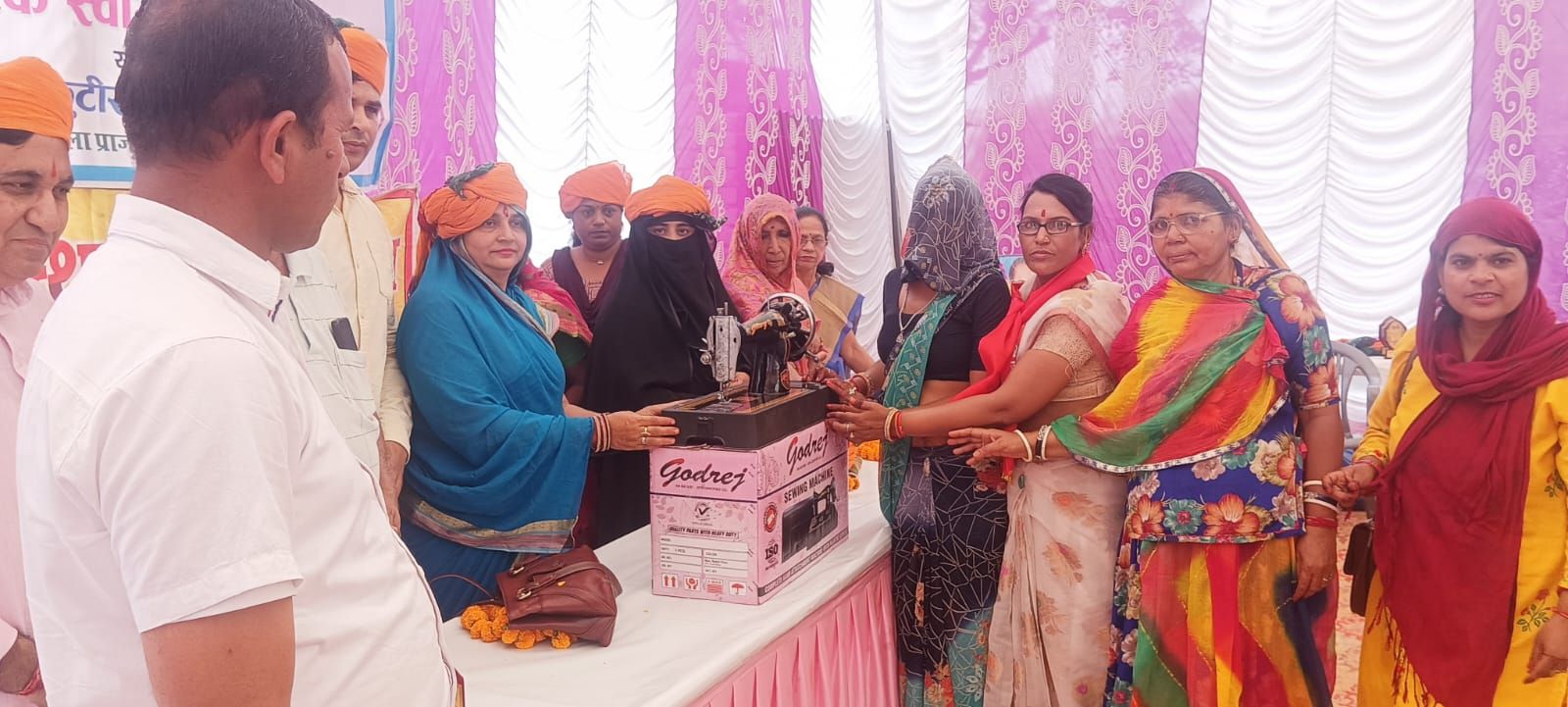 राजलदेसर मैं डॉक्टर भीमराव अंबेडकर जयंती महिला को स्वरोजगार के रूप में सिलाई मशीन देकर मनाई कमला प्रजापत ने बताया कि महिलाएं रुई बत्ती, मसाला पैकिंग ,मसाला पीसना, पोछा वाइपर बनाकर वह सिलाई के माध्यम से महिलाएं छोटे-छोटे रोजगार कर सकती हैं इस अवसर नरेंद्र कुमार अग्रवाल जी अवसर पर महेंद्र झांझरिया जी प्रभा ध॑धावत जिला अध्यक्ष भारतीय मुद्गल आईटी सेल वीरेंद्र कुमार लाटा मेघराज जी महर्षि ,मंजू बानो ,मंजू रानी गंगानगर ,ओम प्रकाश सोनी ,कोमल शर्मा बीकानेर पब्लिक कोर्ट, सुप्यार जी चरण कमलेश दर्जी, निर्मला कंवर भाटी, सेकंडों कार्यकर्ता उपस्थित रहै