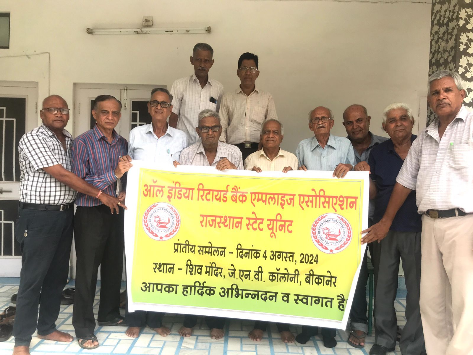 शिव मंदिर, जे एन वी कॉलोनी, बीकानेर आहूत किया गया है । सचिव सुनील गुप्ता ने बताया कि राज्य सम्मेलन के बैनर का लोकार्पण एस पी सोबती, के आर उपाध्याय, गौरी शंकर खत्री, आर के शर्मा, रामेश्वर सुथार, आर के श्रीमाली, नलिन सारवाल, सैयद मुश्ताक अली, माणक सुथार, सतेन्द्र शर्मा, डी एल भटेजा की उपस्थिति में किया गया । आर के शर्मा ने बताया कि सम्मेलन में संगठन के प्रदेश भर से जिला इकाइयों के प्रतिनिधि भाग लेंगे । कोषाध्यक्ष आर के श्रीमाली ने बताया कि प्रतिनिधि पंजीकरण शुल्क रू 200.00 रखा गया है ।