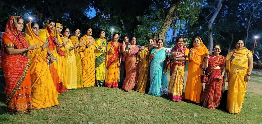 सभी महिलाओं ने पीली साड़ी और हरी चूड़ियां पहनी और हरियाली अमावस्या का प्रोग्राम भी धूमधाम से मनाया।*