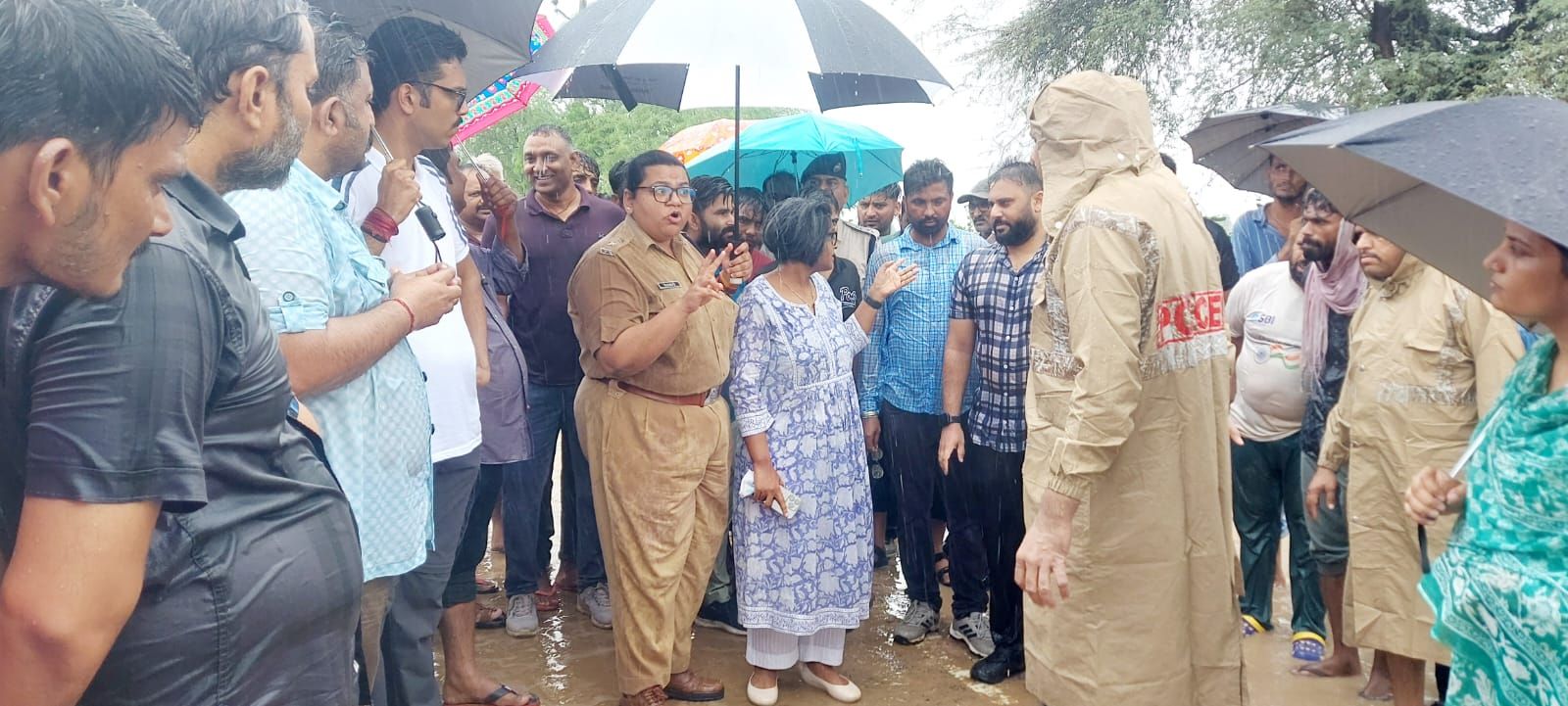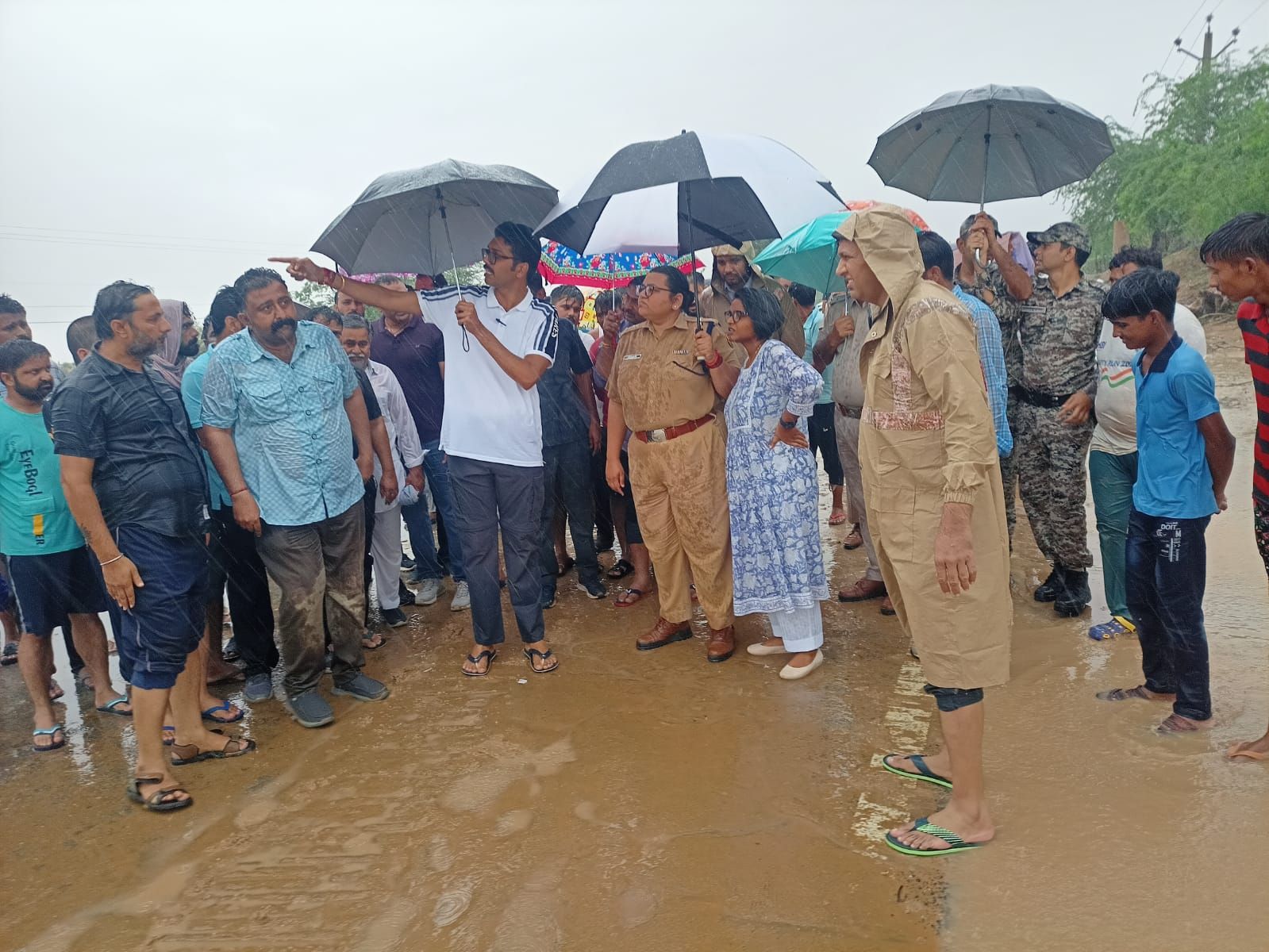 बीकानेर, 16 अगस्त। जिला कलक्टर श्रीमती नम्रता वृष्णि और पुलिस अधीक्षक श्रीमती तेजस्विनी गौतम ने श्रीकोलायत विधायक श्री अंशुमान सिंह भाटी के साथ कोलायत क्षेत्र में बरसात के कारण हुई जलभराव की स्थिति का जायजा लिया। इस दौरान उपखण्ड स्तरीय अधिकारी साथ रहे।