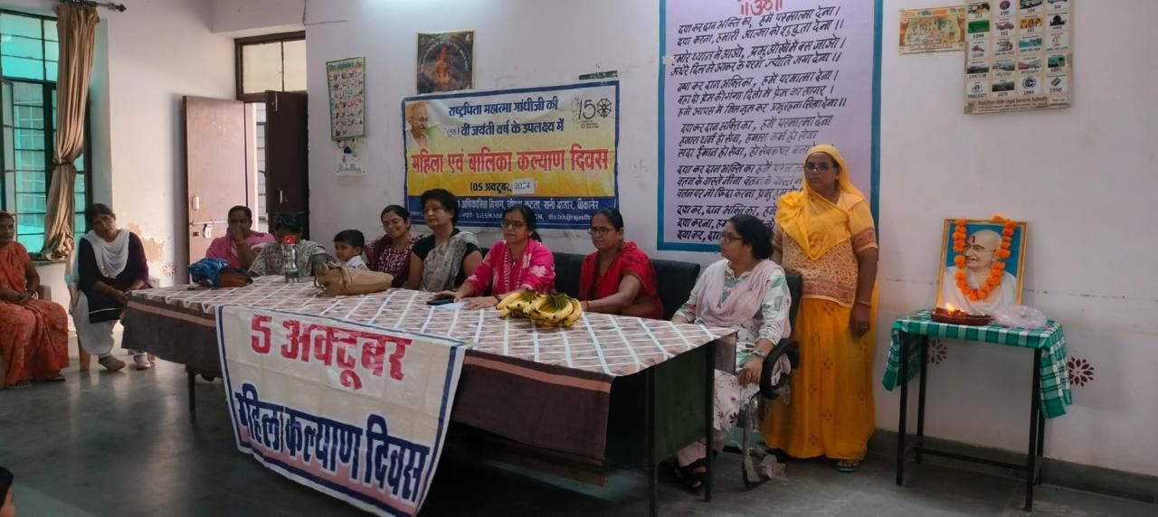 बीकानेर, 5 अक्तूबर। समाज कल्याण सप्ताह के पाचवें दिन शनिवार को नारी निकेतन में महिला एवं बालिका कल्याण दिवस मनाया गया। इस दौरान नारी निकेतन अधीक्षक डॉ. शारदा देवी तथा संस्था कार्मिकों पुष्पा, नीलम पंवार, मीनू डाबी, कांति आचार्य एवं सामाजिक कार्यकर्ता विजयलक्ष्मी यादव, काउन्सलर अनुराधा पारीक ने महात्मा गांधी के चित्र के समक्ष पुष्पाजंली अर्पित की।