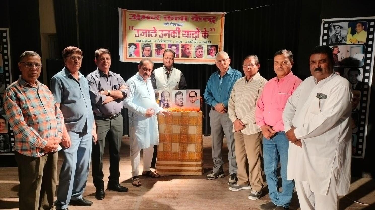 अमन कला केंद्र द्वारा शनिवार को टाउन हॉल में हिंदी सिनेमा के जाने-माने संगीतकार चित्रगुप्त की जयंती व संगीतकार रोशन की पुण्यतिथि के अवसर पर उजाले उनकी यादों के कार्यक्रम आयोजित किया गया संस्था के अध्यक्ष एम रफीक कादरी ने बताया कि कार्यक्रम के मुख्य अतिथि अरविंद मिढ़ा उपाध्यक्ष शहर कांग्रेस कमेटी थे अध्यक्षता संयुक्त रूप से एन डी रंगा अध्यक्ष सखा संगम व नारायण बिहानी ने की विशिष्ट अतिथि के रूप में मोहम्मद सदीक चौहान एम आर मुगल डॉ सी एस मोदी डॉ प्रवीण चतुर्वेदी डॉ दिनेश शर्मा डॉ हिमांशु दाधीच संजीव एरन थे अनवर अजमेरी ने बताया कि बीकानेर के जाने-माने गायक कलाकार सिराजू दिन खोखर अहमद हारून कादरी एम रफीक कादरी ख्वाजा हसन कादरी अनवर अजमेरी डॉ पी के सरीन दीपक खत्री सुमन पवार दीप माला राजेश अरोड़ा दिव्यांशु अग्रवाल डॉ प्रवीण चतुर्वेदी डॉ दिनेश शर्मा डॉ हिमांशु दाधीच संजीव एरन प्रवीण शर्मा ने गीत प्रस्तुत किए संचालन एम रफीक कादरी ने किया