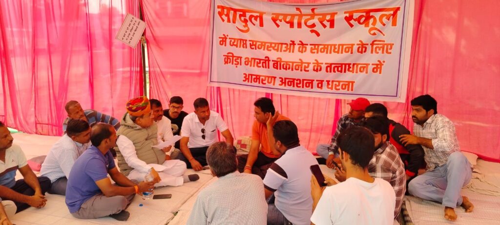 सादुल स्पोर्ट्स स्कूल में खेल और खिलाड़ियों की व्यवस्थाओं की विभिन्न मांगों को लेकर क्रीड़ा भारती के बैनर तले काफी दिनों से चल रहे धरना स्थल पर पूर्व केबिनेट मंत्री और लोकसभा चुनावों में कांग्रेस प्रत्याशी गोविन्दराम मेघवाल पहुँचे।