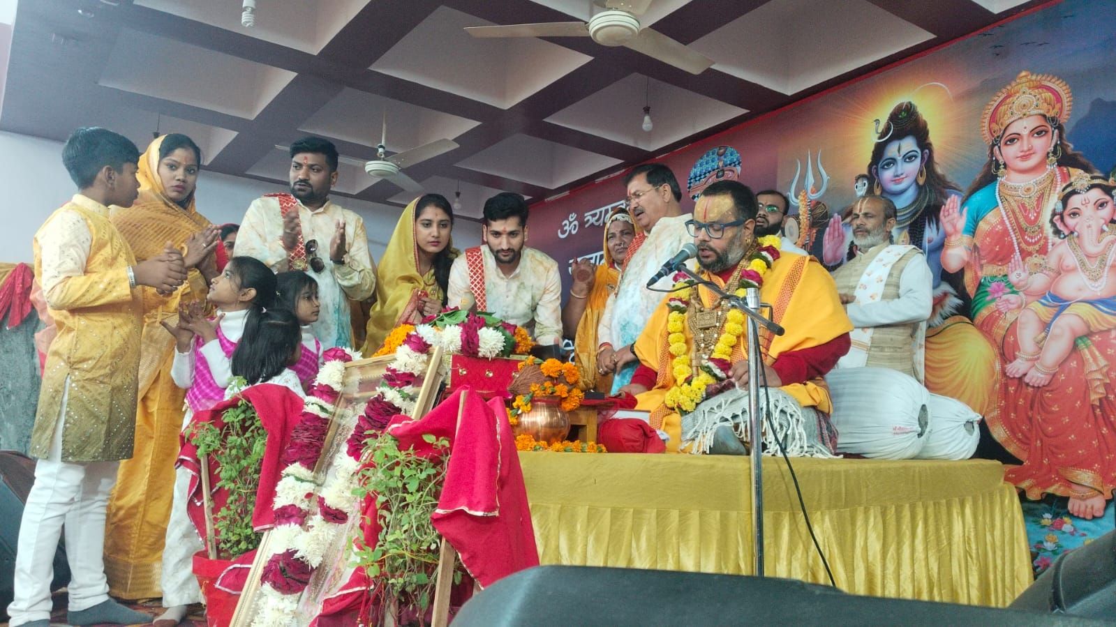 बीकानेर। श्रीराम कथा समिति के तत्वाधान में सीताराम भवन में चल रही 9 दिवसीय शिव पुराण कथा के पांचवें दिन वृन्दावन से पधारे महाराज भरत शरण ने कहा कि दुख से भरे संसार में साधु संतों के मार्गदर्शन की महत्ता भी बताई। साथ ही कहा कि जो दावा करे दुख मिटाने का,वो नकली है। क्योंकि जो असली है,वो आपके दुखों को मिटाने का दावा नहीं करेगा। वो आपके जीवन को समझाएगा कि इंसान का शरीर स ंसार में आया है तो दुख मिलेगा। लेकिन भगवान पर भरोसा रखना,सब ठीक हो जा एगा। महाराज श्री ने कहा कि शिव परिवार में भगवान के वाहक नन्दी,मां पार्वती का शेर, गणेश जी का मूसक और कार्तिकेय का वाहन मोर है। शिव के गले मे सर्प रहते हैं जो सभी विपरीत विचारधारा के बीच सामंजस्य रखना ही शिव पुराण सिखाता है। महाराज ने कहा कि भगवान शंकर वैराग्य के देवता माने गए है, परंतु शिव ने विवाह भी कर संसार को गृहस्थ आश्रम में रहकर भी वैराग्य व योग धर्म का अनुसरण करने का तरीका दिया। कथावाचक भरत शरण ने कहा कि शिव पुराण में भगवान भोलेनाथ और मां जगत जननी पार्वती के विवाह की कथा का विवरण है।अपने बच्चों को भी भगवान शिव को जल चढ़ाने की सीख दें। यही संस्कार उसे आगे बढऩे में मदद करेगा। उन्होंने कहा कोरोना काल में किसी ने परिवार का साथ नहीं दिया,लेकिन तुम्हारे पुण्य जरूर क ाम आए। शिव पुराण की कथा कहती है जो इस कथा का श्रवण कर लेता है उसके शरीर की मुक्ति हो जाती है। इससे पहले वृंदावन से पधारे पंडित विक्रम सिंह तथा अवध बिहारी ने मुख्य यजमान बजरंग लाल,शांतिदेवी चांडक,नवल किशोर चांडक,विजय वर्षा चांडक,पवन,मधु चांडक,रितु चांडक,मनीषा चांडक,पूर्णिमा चांडक,प्रकाश चांडक,रागिनी चांडक,सुमन चांडक तथा अभय-कश्यप चांडक आदि परिवार द्वारा पूर्ण विधि विधान द्वारा मंत्रोचार के साथ पूजन करवाया। इस अवसर पर नारायण डागा,जगदीश कोठारी,नारायण मिमानी,याज्ञवल्क्य दम्माणी,मोहित चांडक, विष्णु चांडक,घनश्याम कल्याणी सहित बड़ी संख्या में श्रद्धालु मौजूद रहे। कथा में वाद्य यंत्रों पर सोनू बाबा,विष्णु तिवारी तथा बंटी महाराज ने शानदार भजनों की प्रस्तुति दी। संपूर्ण पंडाल को भक्ति पूर्ण भाव से वातावरण बनाया। कथा के अंत में महाआरती का आयोजन किया गया।