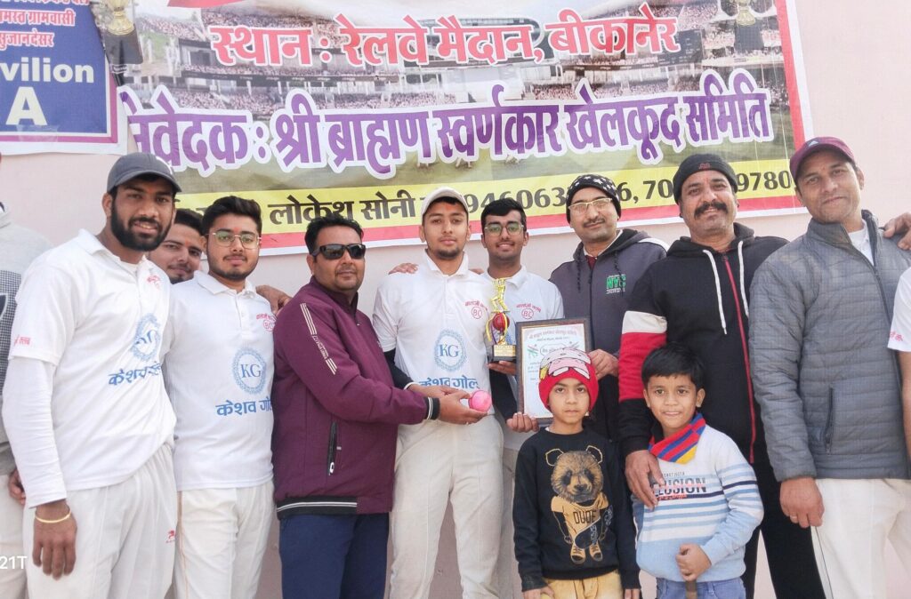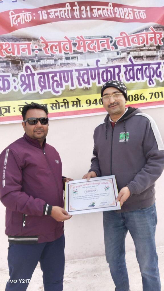 आज मैच के मुख्य अतिथि राजेश ने नीलेश को मैन ऑफ़ द मैच ट्रॉफी सर्टिफिकेट देते हुवे कहा कि इस प्रतियोगिता में सभी टीमों ने जबरदस्त चल रही शीतलहर के बावजूद काफ़ी अच्छी प्रेक्टिस की है