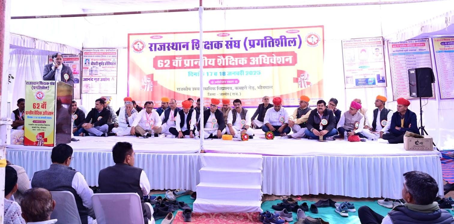 बीकानेर 19 फरवरी 2025 राजस्थान शिक्षक संघ प्रगतिशील का प्रांतीय शैक्षिक सम्मेलन कचहरी रोड, राजकीय उच्च प्राथमिक विद्यालय, भीनमाल में संपन्न हुआ । मुख्य वक्ता ऑल इंडिया स्टेट गवर्नमेंट एम्पलाइज फेडरेशन के राष्ट्रीय अध्यक्ष सुभाष लांबा ने शिक्षकों को संबोधित करते हुए कहा कि ज्वलनत समस्याओं के निराकरण के लिए प्रगतिशील शिक्षक संघ हमेशा तत्पर रहा है। राजस्थान कर्मचारी संयुक्त महासंघ के प्रदेश अध्यक्ष महावीर प्रसाद शर्मा ने राज्य सरकार को चेतावनी देते हुए कहा कि यदि राज्य सरकार कर्मचारियों की मांगों पर अति शीघ्र विचार नहीं करती है तो जल्द ही विरोध प्रदर्शन किया जाएगा । राजस्थान शिक्षक संघ प्रगतिशील के प्रदेश अध्यक्ष बना राम चौधरी ने हजारों शिक्षकों को संबोधन से जोश भरते हुए कहा कि राज्य सरकार दोगलापन कर रही है, शिक्षकों की स्थानांतरण नीति जल्द लागू करें ,तृतीय श्रेणी शिक्षकों के स्थानांतरण करें, महात्मा गांधी विद्यालयों का अलग कैडर बनाया जाए, 2007-8 के शिक्षकों प्रबोधकों की वेतन विसंगति दूर की जाए, संविदा भर्ती बंद की जाए। प्रदेश मुख्य महामंत्री पूनम चंद बिश्नोई ने आह्वान किया कि सरकार समय पर हमारी मांगों पर गौर करें और शिक्षकों की समस्याओं का समाधान करें। राजस्थान शिक्षक संघ प्रगतिशील के प्रांतीय सलाहकार मंडल के अध्यक्ष सुभाष आचार्य ने अपने उद्बोधन में कहा कि सरकार को शिक्षकों की हर जरूरत को पूरा करते हुए उन्हें अन्य कामों से मुक्त रखे जिससे कि शिक्षा का सर्वांगीण विकास हो सके और अध्यापक भी अपने विद्यालय में शिक्षा की अलग जगा सके।