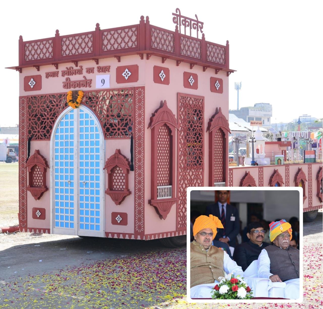 बीकानेर, 26 जनवरी। उदयपुर के महाराणा भूपाल स्टेडियम में रविवार को आयोजित राज्य स्तरीय गणतंत्र दिवस समारोह के दौरान बीकानेर जिले की झांकी प्रदर्शित की गई। समारोह के मुख्य अतिथि राज्यपाल श्री हरिभाऊ बागडे थे। कार्यक्रम में मुख्यमंत्री श्री भजन लाल शर्मा की गरिमामय मौजूदगी रही। वहीं मुख्य सचिव श्री सुधांश पंत सहित वरिष्ठ अधिकारी भी मौजूद रहे।