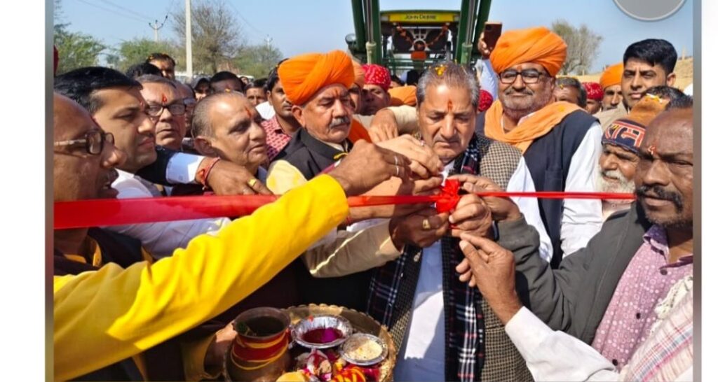 उपखंड मुख्यालय श्री डूंगरगढ़ के हंसो जी धाम लिखमादेसर में भामाशाह मोहनलाल सिंघी द्वारा निर्मित भव्य द्वार का लोकार्पण किया गया। इस अवसर पर हजारों की संख्या में श्रद्धालु भक्तजन उपस्थित रहे। बेड बाजो की धुन में भक्त नाचते गाते हुए हसोजी धाम लिखमादेसर जसनाथ जी महाराज के गगन बेदी जयकारा लगाते हुए पहुंचे। जिससे पूरा पंडाल जयकारों से गूंजायमान हो गया ।एक तरफ हवन में वैदिक मंत्र उच्चारण के साथ यज्ञ आहुति देते हुए यजमान बेठे हुए थे।दूसरे तरफ भागवत कथा का बड़ा पंडाल सजाया हुआ था और भक्तों का आना लगातार बना हुआ था भामाशाह मोहनलाल सिंघी जी मूलनिवासी समंदर श्री डूंगरगढ़ हाल प्रवासी कटक द्वारा निर्मित भव्य द्वार के लोकार्पण के अवसर पर महंत भवरनाथ पूर्व विधायक मंगलाराम गोदारा भामाशाह मोहनलाल सिघी सरपंच प्रतिनिधि मुकन नाथ ने द्वारका पिता खोलकर लोकार्पण किया। उपस्थित सभी जनो ने खुशी का इजहार किया। उपस्थित जनो ने जयकारा लगाया इस दौरान जसनाथ जी महाराज हसोजी महाराज के जयकारे लगाए गए । आयोजको द्वारा पुष्प वर्षा कर स्वागत किया गया इस अवसर पर अणुव्रत समिति श्रीडूंगरगढ़ के अध्यक्ष सुमति पारख नगर पालिका प्रतिपक्ष नेता अंजू पारख मनोज पारख व्यापार मंडल के पवन राठी शेखर दुगड भंवरलाल दुगड पूनम चंद सोमानी ओसवाल पंचायत अध्यक्ष विनोद भादानी अशोक बेद समदसर निवासी चंदू भाट तथा भगवान नाथ बीरबल नाथ एमपी कलवानिया नथूनाथ ज्याणी वरिष्ठ पत्रकार शुभकरण पारीक सहित अनेक गणमान्य लोगो की उपस्थिति रही।