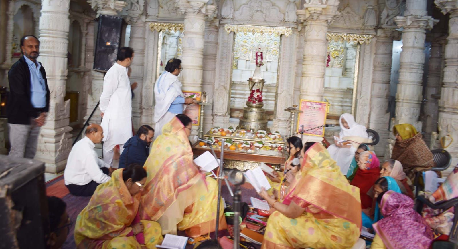 बीकानेर, 7 फरवरी। जैन श्वेताम्बर पार्श्वचंद्र गच्छ की साध्वी श्री पद्म प्रभा व सुव्रताश्रीजी के सानिध्य में शुक्रवार को आसानियों के चौक के भगवान महावीर स्वामी के जिनालय में वार्षिक ध्वजारोहण तथा सत्तर भेदी पूजा भक्ति संगीत के साथ की गई।