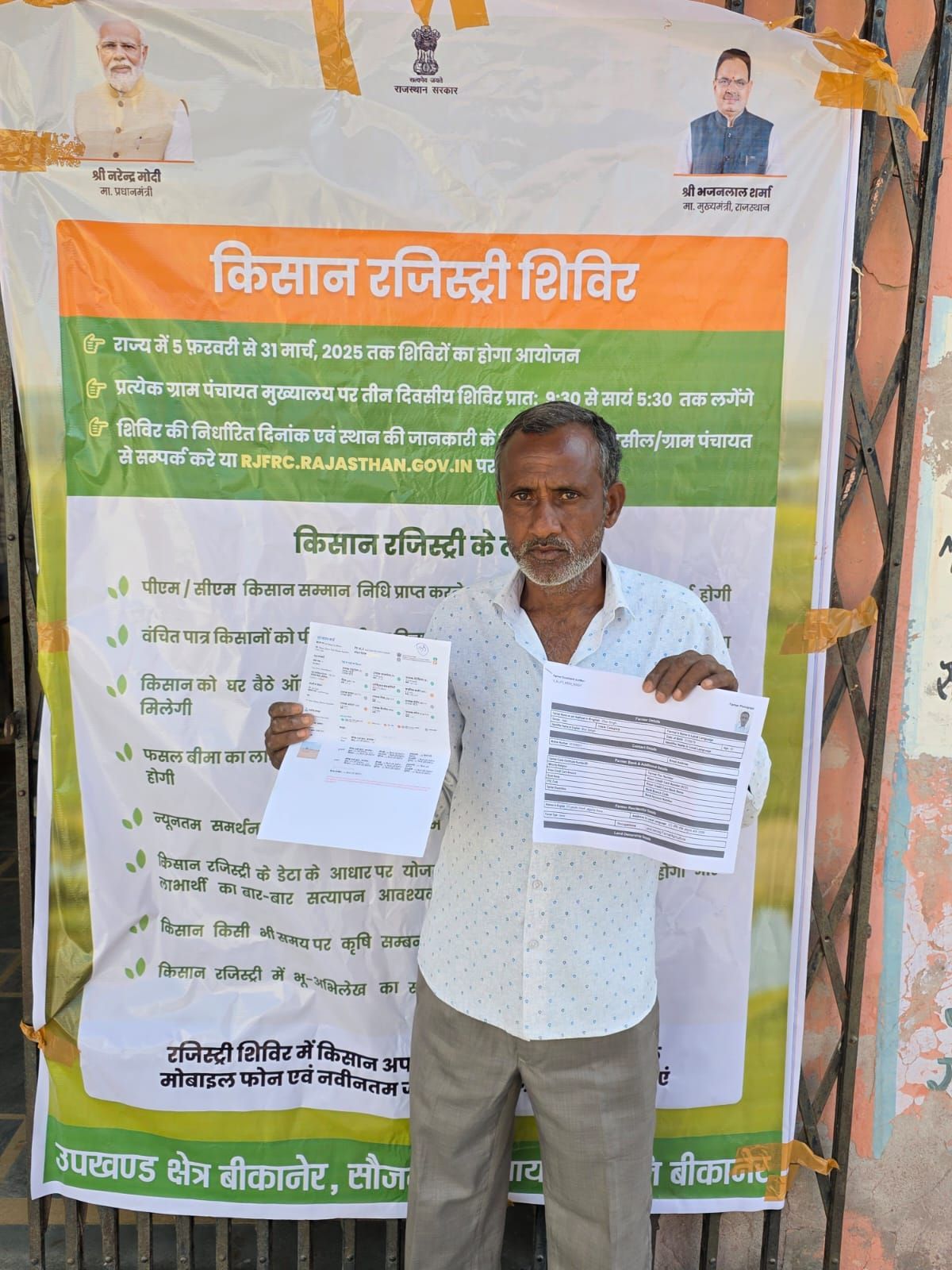 बीकानेर। मुख्यमंत्री श्री भजनलाल शर्मा के निर्देशानुसार प्रदेश भर में ग्राम पंचायत स्तर पर किसान रजिस्ट्री शिविर आयोजित किए जा रहे हैं।