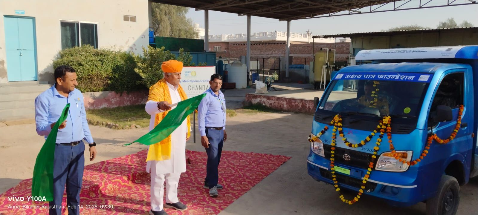 बीकानेर, 14 फरवरी। बीकानेर पश्चिम विधायक श्री जेठानंद व्यास ने शुक्रवार को अक्षय पात्र फाउंडेशन को चांडक ग्रुप द्वारा भेंट किए हुए तीन इलेक्ट्रॉनिक वाहनों को हरी झंडी दिखाकर भोजन वितरण के लिए रवाना किया।