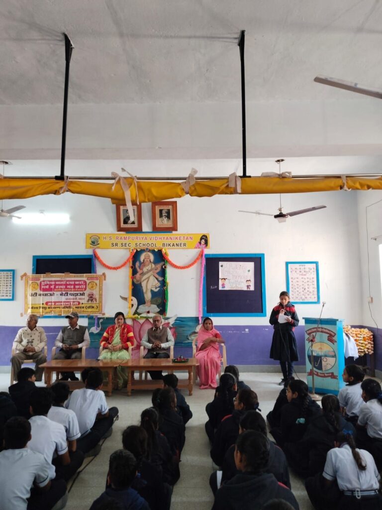 बीकानेर रामपुरिया विद्या निकेतन एवं गर्भस्थ शिशु संरक्षण समिति बीकानेर महानगर शाखा के संयुक्त तत्वाधान में 14 फरवरी को विद्यालय प्रांगण में मातृ-पितृ दिवस मनाया गया। कार्यक्रम के मुख्य वक्ता व संस्था के राष्ट्रीय अध्यक्ष रामकिशोर तिवाडी ने बच्चों को उनके माता-पिता के सामने बिठाकर बच्चों के द्वारा पूजन,चरण स्पर्श, माल्यार्पण के साथ मिष्ठान खिलाकर मुंह मीठा करवाया ।