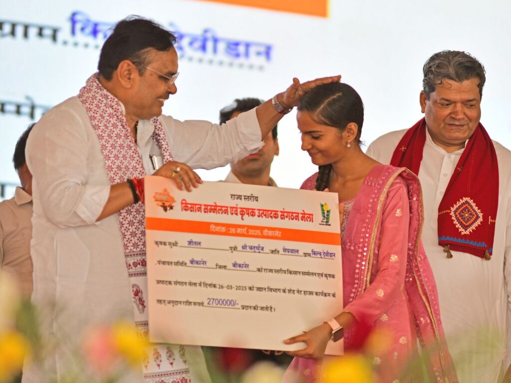 बीकानेर, 26 मार्च। मुख्यमंत्री श्री भजनलाल शर्मा ने कहा कि अन्नदाता किसान देश एवं प्रदेश की आत्मा है अगर किसान विकसित होगा तो देश-प्रदेश विकसित एवं खुशहाल होगा। उन्होंने कहा कि हमारी सरकार का सपना सिर्फ ‘कृषि विकास’ ही नहीं ‘कृषि गौरव’ है। हम चाहते हैं कि राजस्थान का किसान देश में ही नहीं बल्कि दुनिया भर में आदर्श बने। उन्होंने किसानों से आह्वान किया कि वे किसान उत्पादक संगठन (एफपीओ) से जुड़ें जिससे वे लाभ की खेती कर खुद को सशक्त बना सकें।