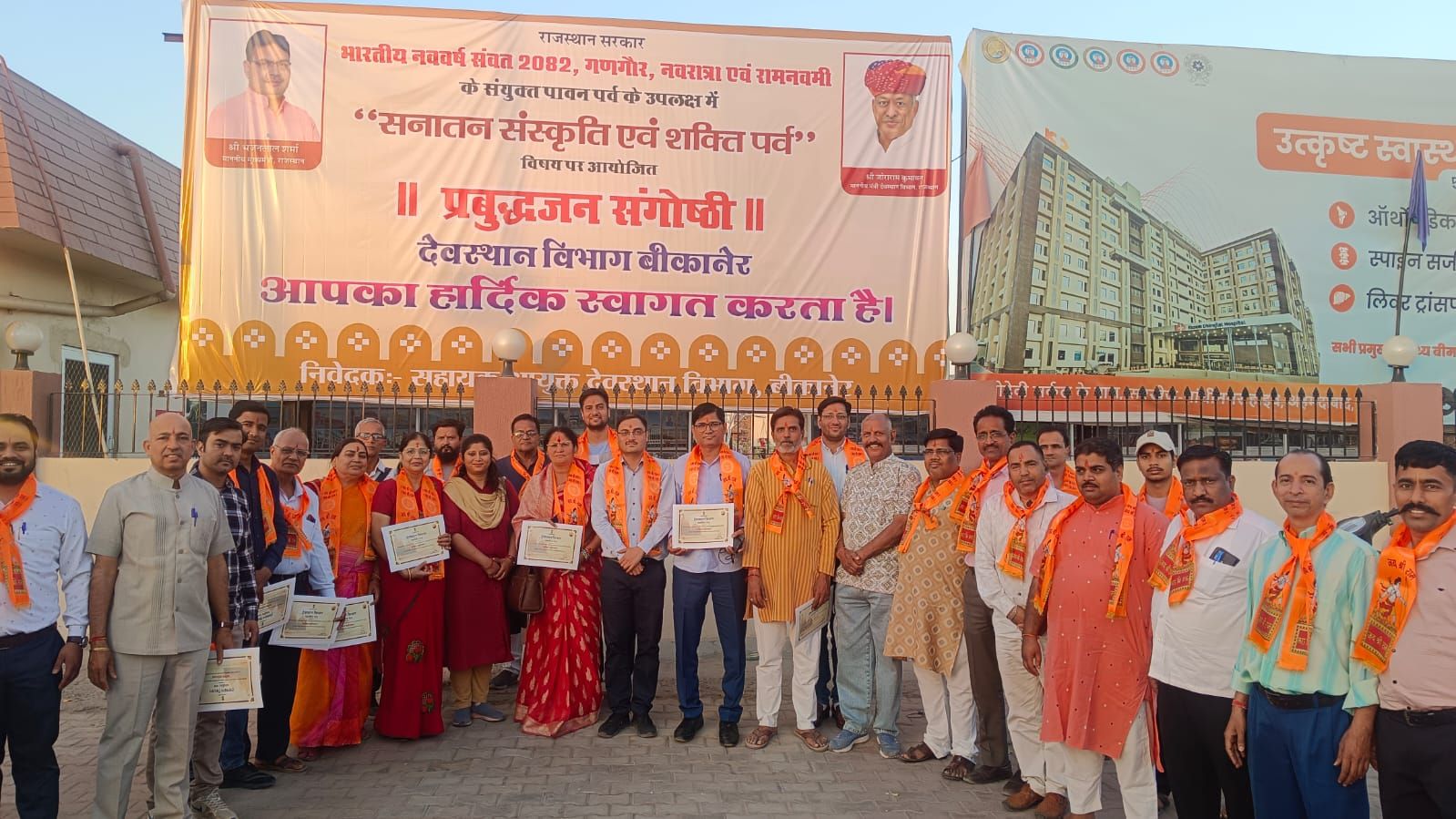 बीकानेर, 31 मार्च। राजस्थान दिवस एवं भारतीय नववर्ष कार्यक्रमों की श्रृंखला में सोमवार को देवस्थान विभाग द्वारा शक्ति महोत्सव पर्व के तहत रानी बाजार स्थित जिला उद्योग संघ सभागार में ‘सनातन धर्म एवं शक्ति’ विषय आधारित संगोष्ठी का आयोजन किया गया।