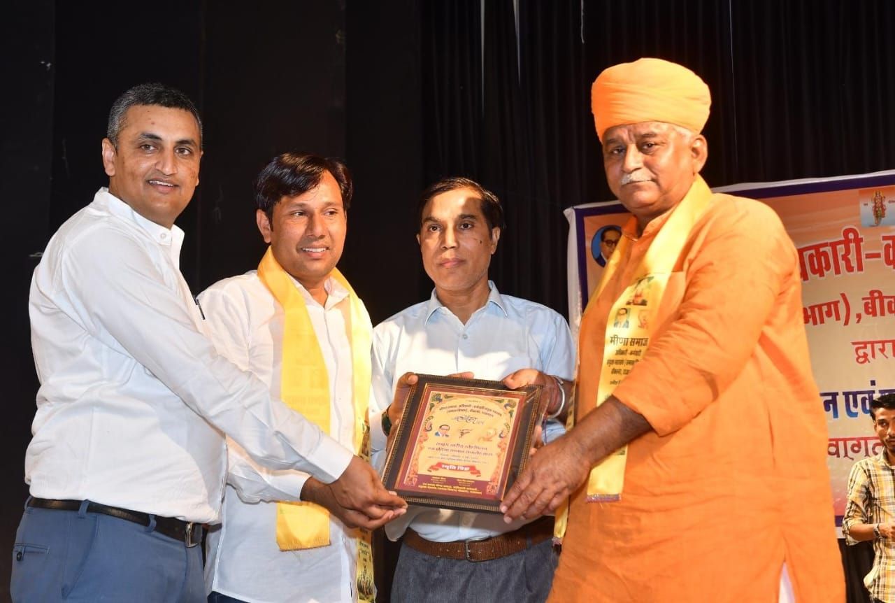 भगवान की पूजा अर्चना के साथ टाऊन हाल में संपन्न हुआ। समारोह के मुख्य अतिथि बीकानेर पश्चिम विधायक जेठानंद व्यास ने समारोह को संबोधित करते हुए कहा कि अधिकारी,कर्मचारियों की वाजिब मांगो के समाधान के लिए में हमेशा तैयार हूं।आप जिस भी विभाग में कार्यरत है पूरी निष्ठा और ईमानदारी से अपने दायित्वों का निर्वहन करें।।वशिष्ठ अतिथि बीकानेर विकास प्राधिकरण के सचिव डॉ. कुलराज मीणा ने कहा कि समाज के युवाओं को नशे से दूर रहना चाहिए तथा सामाजिक कुरीतियों को मिलकर दूर करना होगा । अतिथि के रूप में कर्मचारी राज्य बीमा निगम अस्पताल के चिकित्सा अधीक्षक डॉ.सिया राम मीणा व पीबीएम अस्पताल के सीनियर स्पेशलिस्ट डॉ.मनोज मीना ने कहा कि हम सभी को एकजुट होकर अपने हक और अधिकारों की बात करनी चाहिए । मुख्य वक्ता शिक्षाविद् एवं साहित्यकार डॉ.कांता मीना ने कहा कि प्रत्येक बच्चे में कोई ना कोई प्रतिभा होती है साथ ही ऐसे कार्यक्रम समय समय पर आयोजित होते रहना चाहिए जिससे एक दूसरे की समस्याओं का पता चल सके ओर मिलकर उनका समाधान करवाया जा सके। समारोह के संयोजक मोहर सिंह सलावद ने कहा कि राज्य सरकार को रोस्टर रजिस्टर का संधारण नियमानुसार करना चाहिए व सभी विभागों में बैक लोक को भरा जाएं व हर विभाग की समितियों में मीणा समाज के अधिकारी,कर्मचारी को शामिल करवाया जाएं। जिलाध्यक्ष जयपाल मीणा ने कहा कि जिले में किसी भी कर्मचारी को कोई समस्या हो उसका समय पर समाधान करवाने का पूरा प्रयास किया जाएगा। समारोह में मेधावी विद्यार्थियों व विभिन्न क्षेत्रो में उल्लेखनीय कार्य करने वाली 71 प्रतिभाओं को स्मृति चिन्ह व मेडल पहनाकर सम्मानित किया गया। समारोह में मीणा वाटी सिंगर सुरेश सोनंदा ने रंगारंग प्रस्तुति दी। इस अवसर पर बीकानेर पश्चिम विधायक जेठानंद व्यास, बीकानेर विकास प्राधिकरण के सचिव डॉ.कुलराज मीणा, पीबीएम अस्पताल के डॉ.मनोज मीणा, क.रा.बी.निगम अस्पताल के चिकित्सा अधीक्षक डॉ.सियाराम मीणा,बाबूलाल छोलक,श्रीराम मीणा,डॉ.श्याम लाल मीणा,महासभा के संयोजक मोहर सिंह सलावद, डॉ.कांता मीना,जिलाध्यक्ष जयपाल मीणा,भीम सिंह मीना, बाबूलाल मीणा, धर्मेंद्र मीणा,अंकित मीणा, संदीप कुमार मीना, सुरेन्द्र मीना, सुनील मीना,जितेंद्र मीणा, निर्भय मीना,मनीष कुमार मीना, अनिल कुमार मीना,श्याम सुन्दर,भागीरथ मीना,कुंजीलाल मीणा, आकाश मीणा,सोनम मीणा,सीमा मीणा, प्रिया मीणा,कमल कुमार मीणा, शिवराज मीना,सोनिया कुमार मीना आदि उपस्थित रहे। मंच संचालन पवन कुमार व मदन मोहन मोदी ने किया। जिलाध्यक्ष जयपाल मीणा ने सभी का आभार जताया।