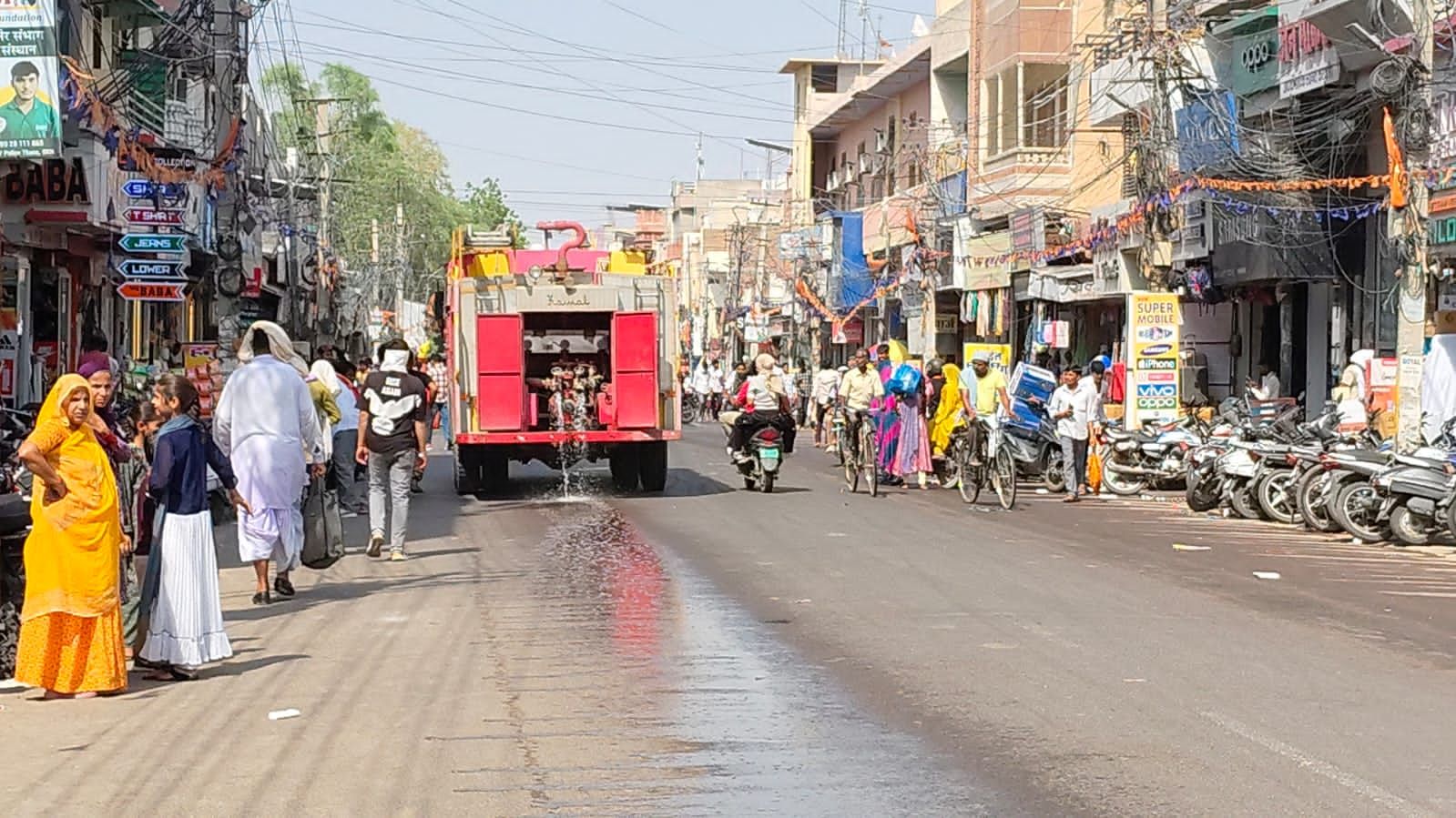 बीकानेर 26.05.2025 नौतपा का दूसरा दिन हल्का गर्म रहा दिन में तापमान बढ़ोतरी को देखते हुए नगर निगम प्रशासन द्वारा बीकानेर के मुख्य बाजार मुख्य सड़क पर अग्निशमन यंत्र द्वारा पानी का छिड़काव किया गया! भारतीय मौसम विभाग के मौसम विज्ञान केंद्र, जयपुर ने आज यानी 26 को दोपहर तीन बजे यलो अलर्ट जारी किया है। यह चेतावनी आगामी तीन घंटों तक प्रभावी रहेगी। चेतावनी के अनुसार करौली, सवाई माधोपुर, बूंदी, बारा, कोटा, झालावाड़, उदयपुर, डूंगरपुर, बांसवाड़ा, चित्तौड़गढ़, प्रतापगढ़ जिलों और आसपास के क्षेत्रों में अचानक मौसम परिवर्तन की संभावना जताई गई है।