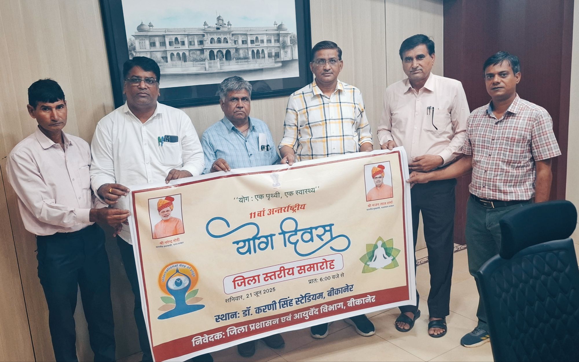 बीकानेर,16 जून। ग्यारहवें अंतराष्ट्रीय योग दिवस का मुख्य समारोह 21 जून को प्रातः 6 बजे से डॉ. करणी सिंह स्टेडियम में होगा। आयोजन ‘योग: एक पृथ्वी, एक स्वास्थ्य’ थीम पर होगा।