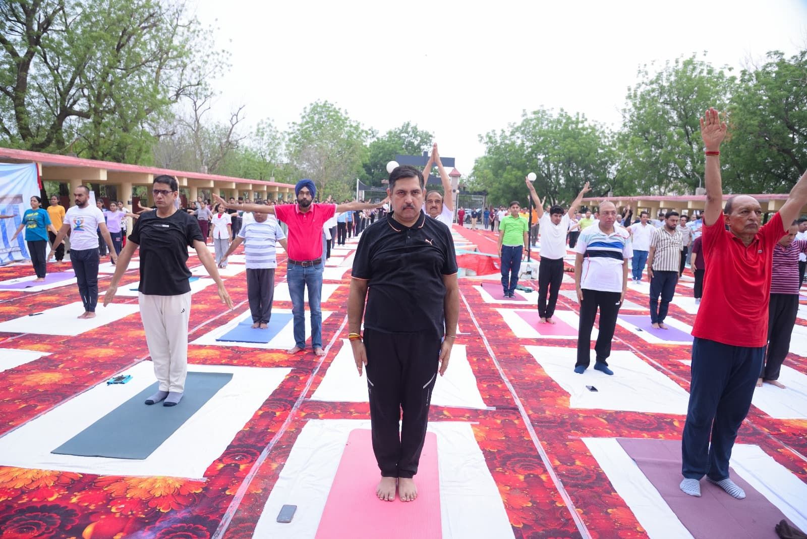 चिकित्सकों ने हिस्सा लिया। हृदय रोग विशेषज्ञ डॉ. पिंटू नाहटा, ऋषिका व्यास एवं उनकी टीम के मार्गदर्शन में लगभग 400 डॉक्टरों ने एक साथ योगासनों का अभ्यास किया। इस दौरान डॉ. नाहटा ने योग प्रोटोकॉल के तहत विभिन्न आसनों का अभ्यास करवाया तत्पश्चात उन्होनें सर्वांगआसन हलासन शीर्षासन अर्द्धमत्स्यासन पश्चिमोत्सासन तथा मयुरासन आदि प्रमुख 10 योग मुद्राएं प्रस्तुत की जिससे समस्त चिकित्सकों में नियमित योगाभ्यास करने का संदेश गया।