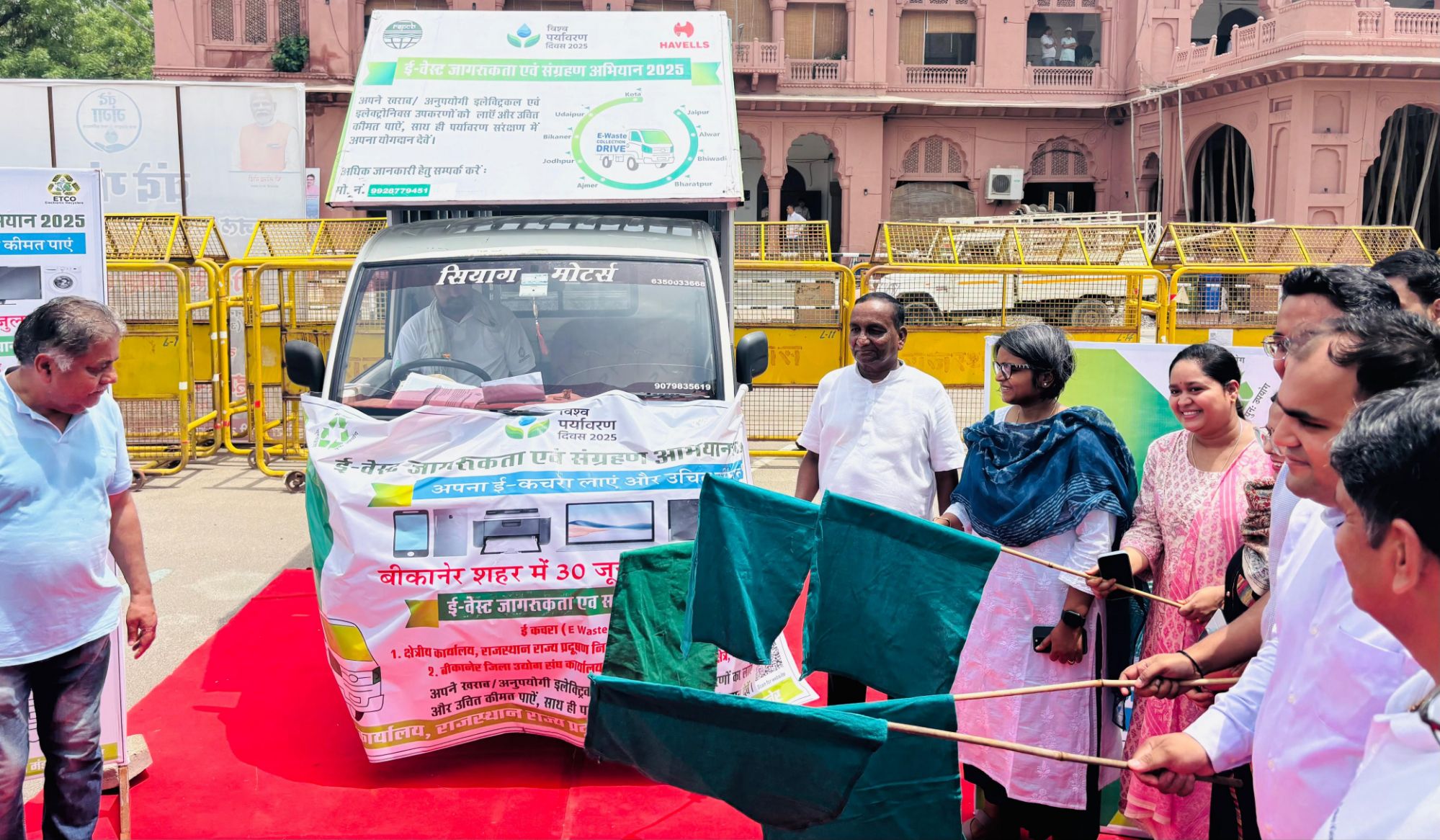 बीकानेर, 30 जून। जिले में ई-वेस्ट जागरूकता एवं संग्रहण अभियान 2025 का शुभारंभ सोमवार को जिला कलेक्टर श्रीमती नम्रता वृष्णि ने ई-वेस्ट संग्रहण वाहन को हरी झंडी दिखा कर किया। इस अवसर पर नगर निगम आयुक्त श्री मयंक मनीष, बीडीए आयुक्त श्रीमती अपर्णा गुप्ता, बीकानेर जिला उद्योग संघ अध्यक्ष श्री डीपी पचीसिया, करणी उद्योग संघ अध्यक्ष श्री महेश कोठारी एवं बिछवाल उद्योग संघ के अध्यक्ष श्री प्रशांत कंसल भी उपस्थित रहे।