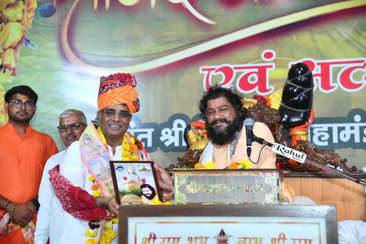 नोखा। श्री बालाजी सेवा धाम में 3 जुलाई से 10 जुलाई तक आयोजित गुरु पूर्णिमा महोत्सव पर श्रीमद्भागवत कथा के दूसरे दिन शुक्रवार को व्यास पीठ पर विराजित अनंत श्री विभूषित महामण्डलेश्वर श्री बालाजी सेवा धाम पीठाधीश्वर आचार्य श्री बजरंगदास जी महाराज ने संतो की महिमा,माँ की महिमा,गो महिमा, माता- पिता की सेवा का वृतांत का विस्तार से वर्णन किया गया। महाराज ने कहा की आप सब पर ठाकुर जी की कृपा है। जिसकी वजह से आप आज कथा का आनंद ले रहे है। श्रीमद भगवत कथा का रसपान कर पा रहें हैं क्योंकि जिन्हें गोविन्द प्रदान करते है जितना प्रदान करते है उसे उतना ही मिलता है। कथा में यह भी बताया की अगर आप भागवत कथा सुनकर कुछ पाना चाहते हैं, कुछ सीखना चाहते है तो कथा में प्यासे बन कर आए, कुछ सीखने के उद्देश्य से, कुछ पाने के उद्देश्य से आएं, तो ये भागवत कथा जरूर आपको कुछ नहीं बल्कि बहुत कुछ देगी। मीडिया प्रभारी पुखराज शर्मा ने बताया की कथा 3 जुलाई से 10 जुलाई तक दोपहर 12 बजे से शाम 4 बजे तक चलेगी और गुरु पूर्णिमा पर होगा विशेष आयोजन होगा। इस अवसर पर मूलवास सिलवा निवासी उद्योगपति भामाशाह शंकर कुलरिया,पूनम माकड़,मदन माकड़ ने भागवत कथा का श्रवण किया व आरती कर महाराजश्री से आशिर्वाद लिया। इस दौरान कथा में बड़ी संख्या में श्रद्धालु मौजूद रहे।